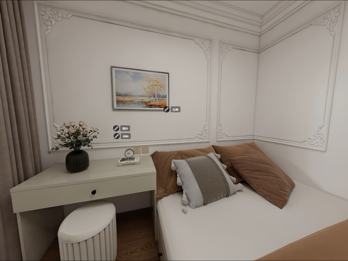 这套美式轻奢风装修,以柔和的基调与实用的布局,打造出适配日常居住的质感空间,尤其卧室部分的细节设计,既贴合风格又兼顾了不同的居住需求。
