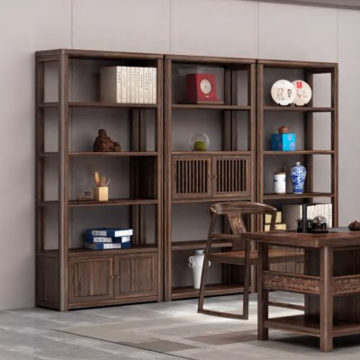 新中式乌金木茶桌椅组合,新中式家用办公茶艺桌,新中式书架,实木家具