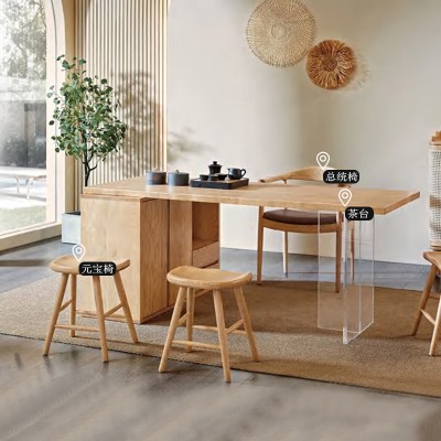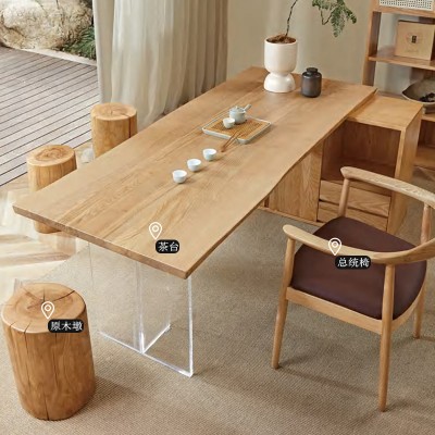 北欧简约亚克力悬浮餐桌实木长方形家用小户型日式极简原木饭桌椅