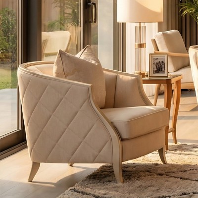 欧美风格 轻奢布艺软包沙发 客厅旋转沙发 C205-香槟色-转椅