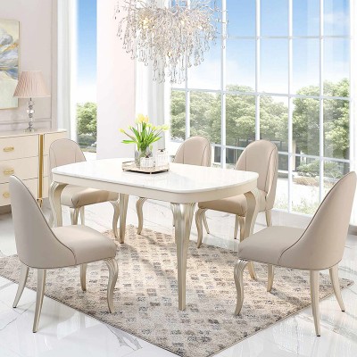欧式风格 珍珠白大理石餐桌 1.6米长餐台 MA-708长餐台+MA-808餐椅