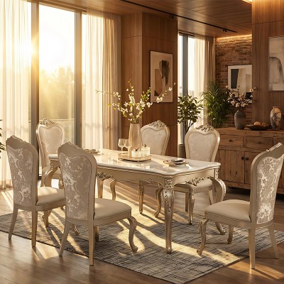 欧式风格 餐厅家具 MA-705长餐台 C7203餐椅 优质桦木 大理石台面 奢华餐桌