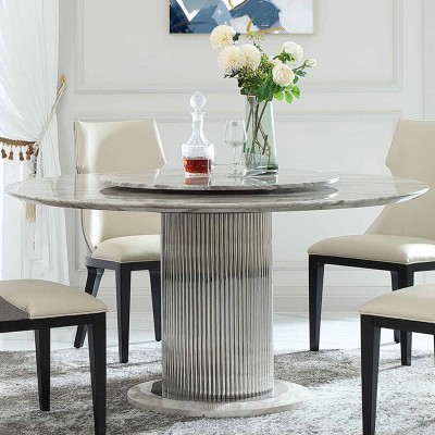 欧式风格 轻奢大理石餐桌 MA-707A圆餐台+转盘 1.5米圆餐桌