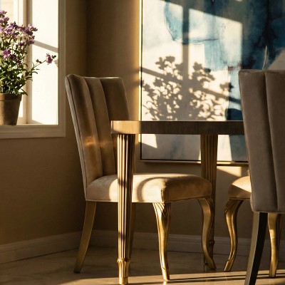 欧式风格 2.1米长餐台 银梨木皮拼花餐桌 MA-710长餐台+MA-811餐椅