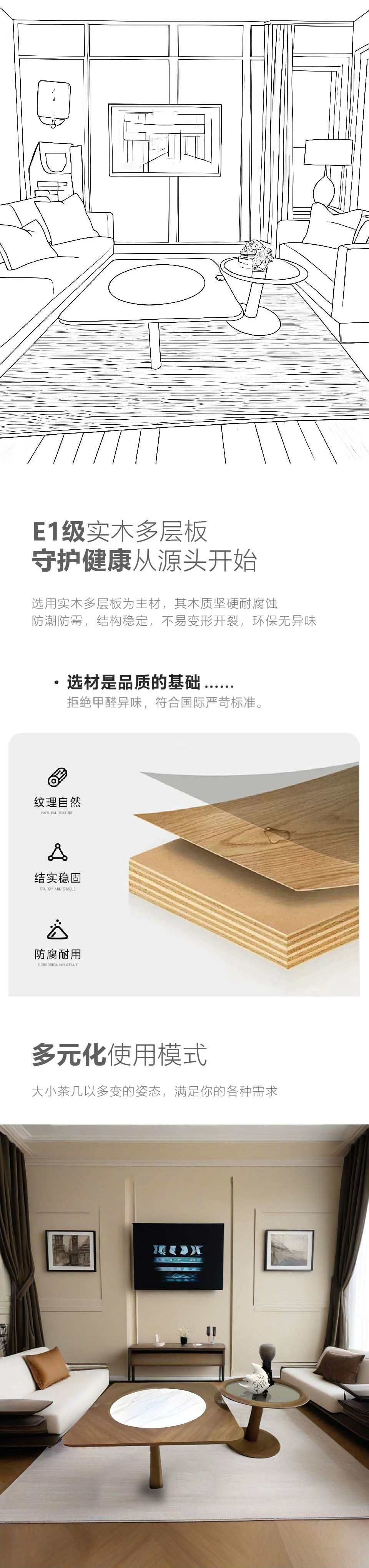 意式极简茶几B763 现代风格 实木板材 客厅家具