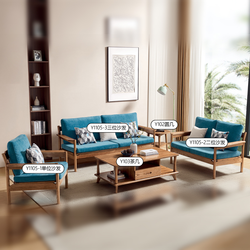 Y1105-1单位沙发Y1105-2二位沙发Y1105-3三位沙发Y103茶几Y102圆几 北欧风沙发圆几实木家具客厅