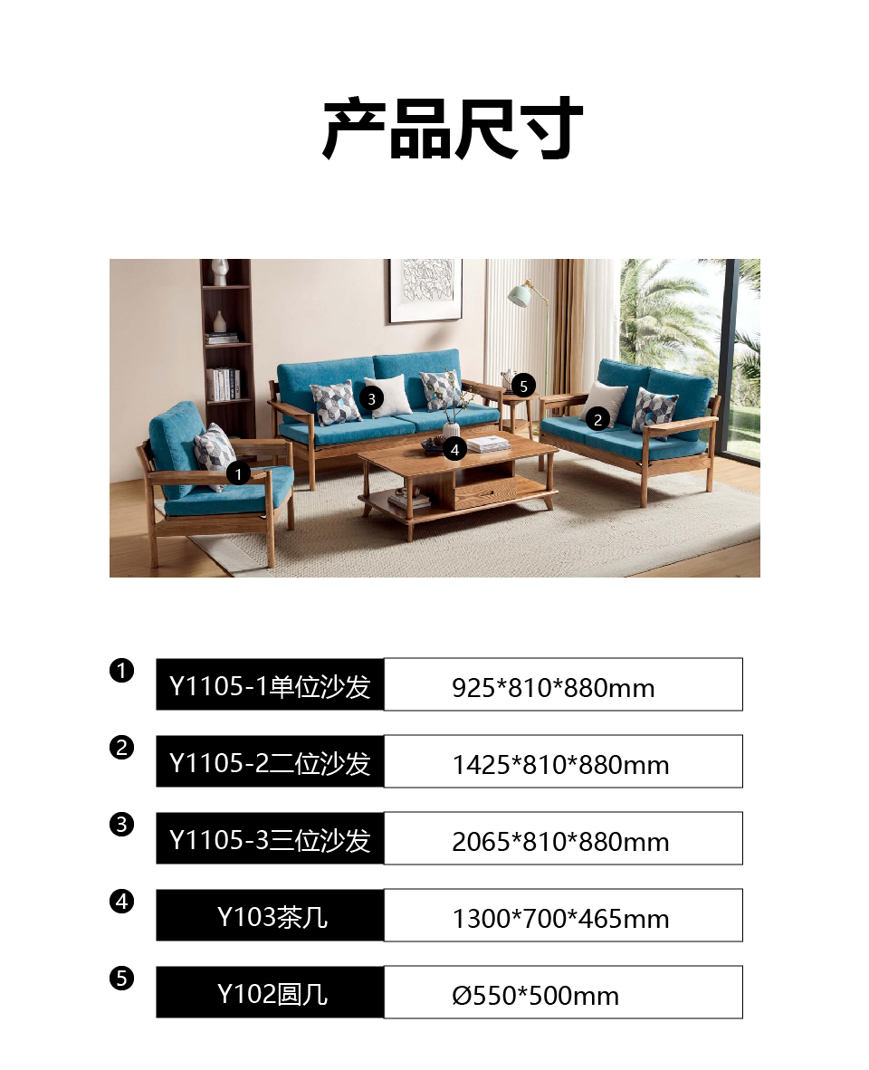 商品名称:Y1105-1单位沙发Y1105-2二位沙发Y1105-3三位沙发Y103茶几Y102圆几 北欧风沙发圆几实木家具客厅