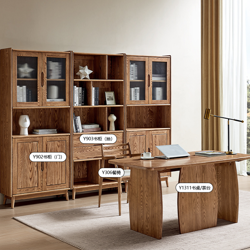 Y902书柜(门)Y903书柜(抽)Y1311书桌茶台Y306餐椅 北欧风实木家具书房