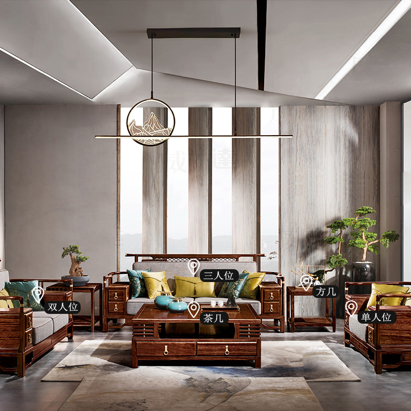 商品名称:祥御沙发 中式实木家具黑檀木沙发茶几方几套组 客厅