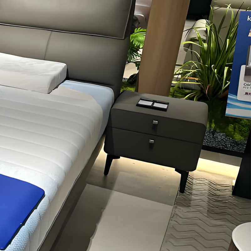 G6035-1真皮床KD38床头柜 现代风格真皮床2.2米 床头柜实木抽柜 卧房套组