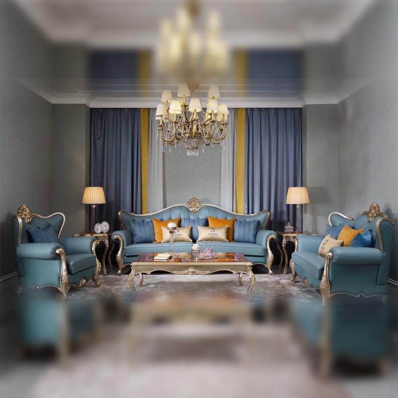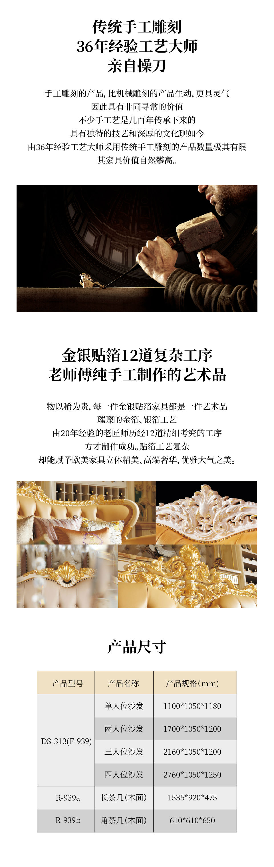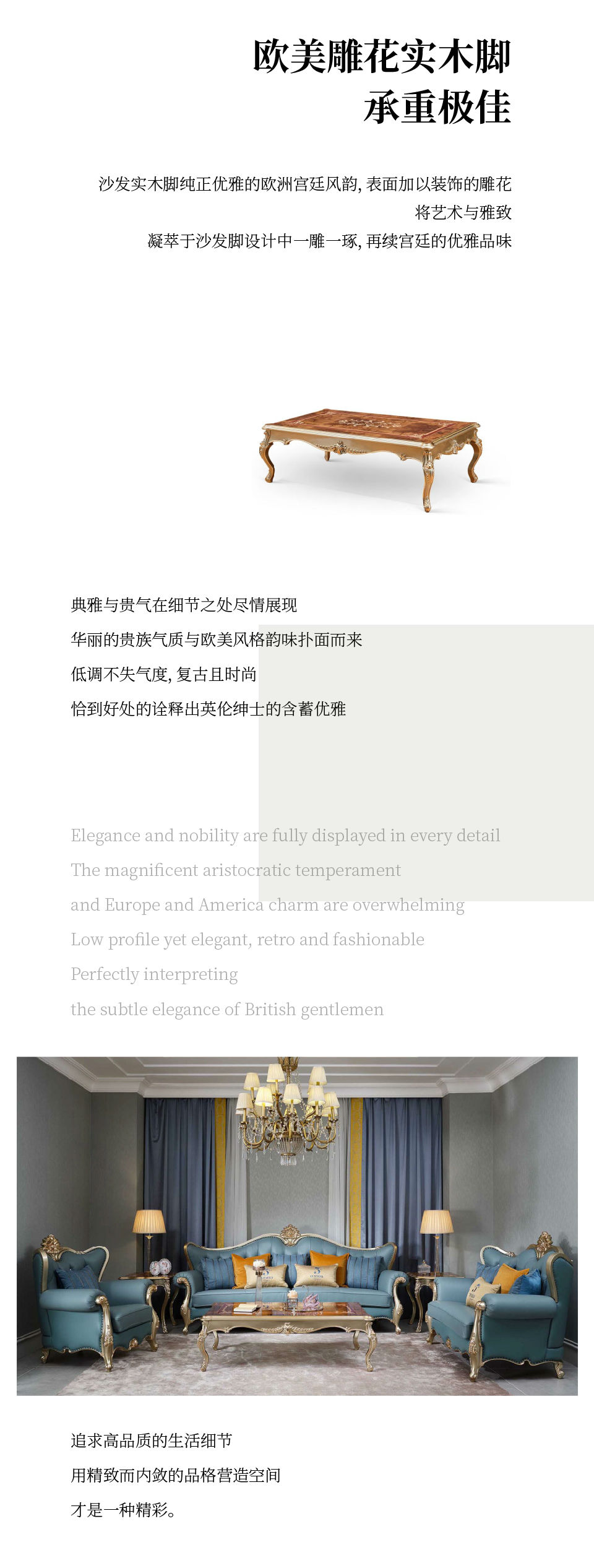 商品名称:DS-313(F-939)沙发R-939a长茶几(木面)R-939b角茶几(木面) 欧美轻奢 宫廷风手工雕刻雕花实木脚 宫廷沙发套组茶几套组
