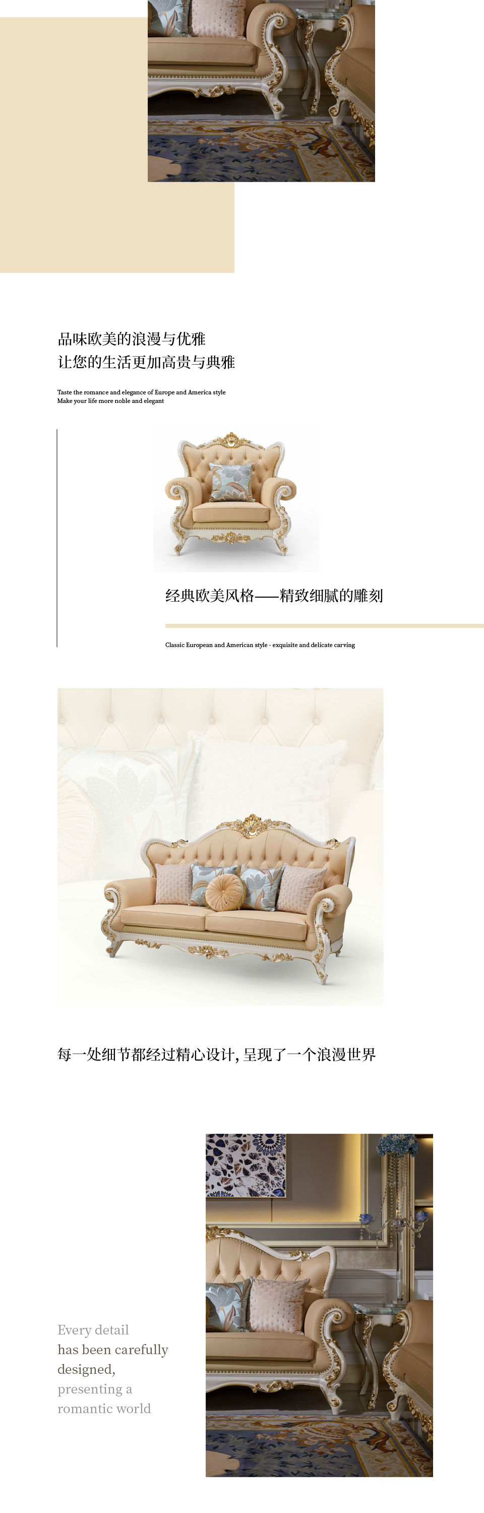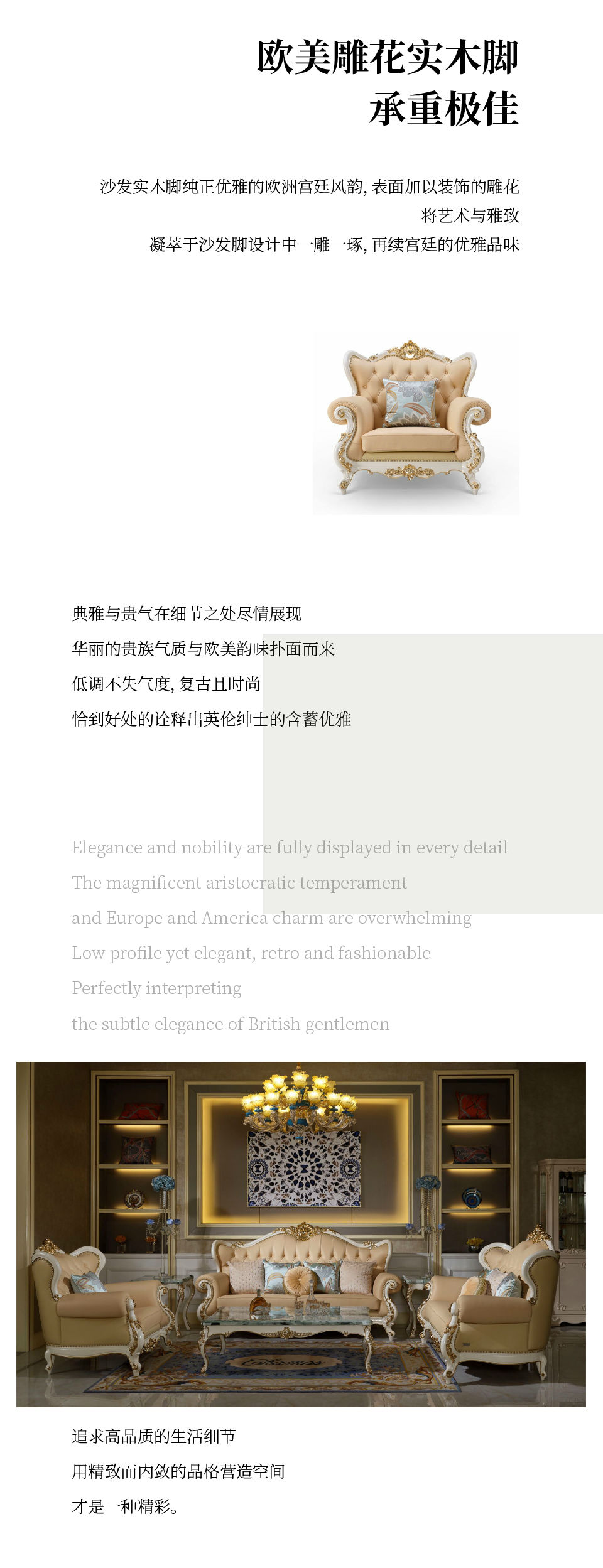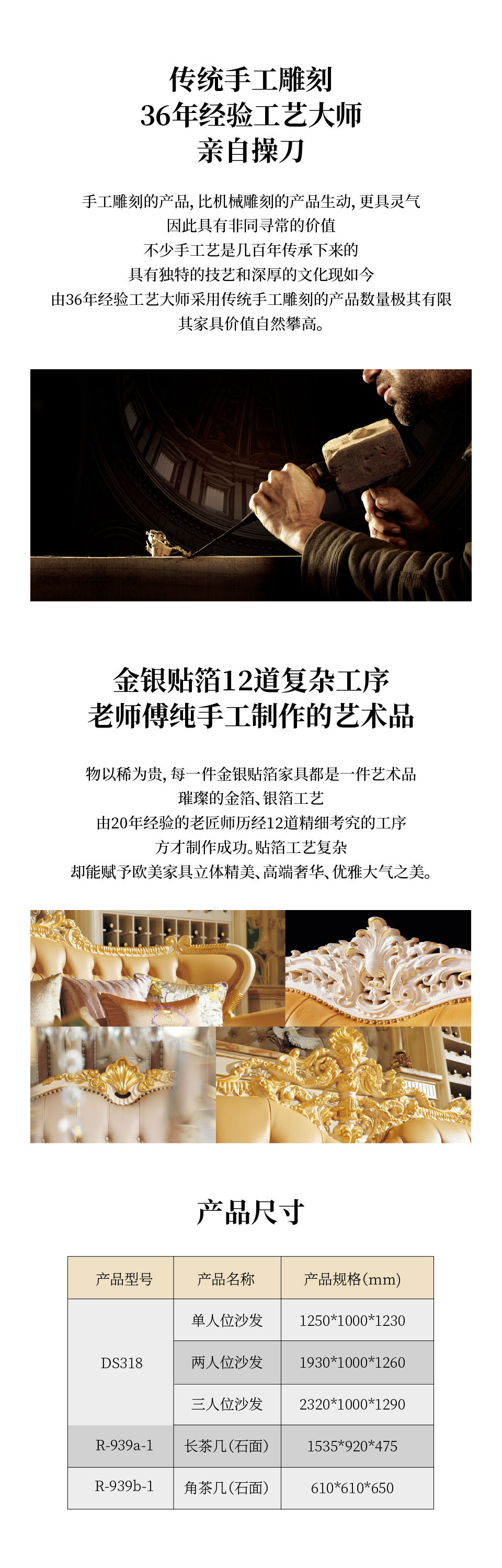 DS318沙发R-939a-1长茶几(石面)R-939b-1角茶几(石面) 欧美轻奢 宫廷风手工雕刻雕花实木脚 宫廷沙发套组茶几套组 欧美轻奢 宫廷风手工雕刻雕花实木脚 宫廷沙发套组茶几套组