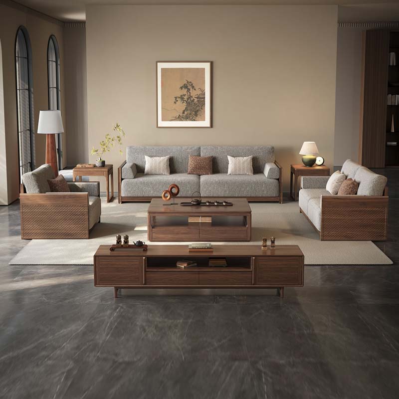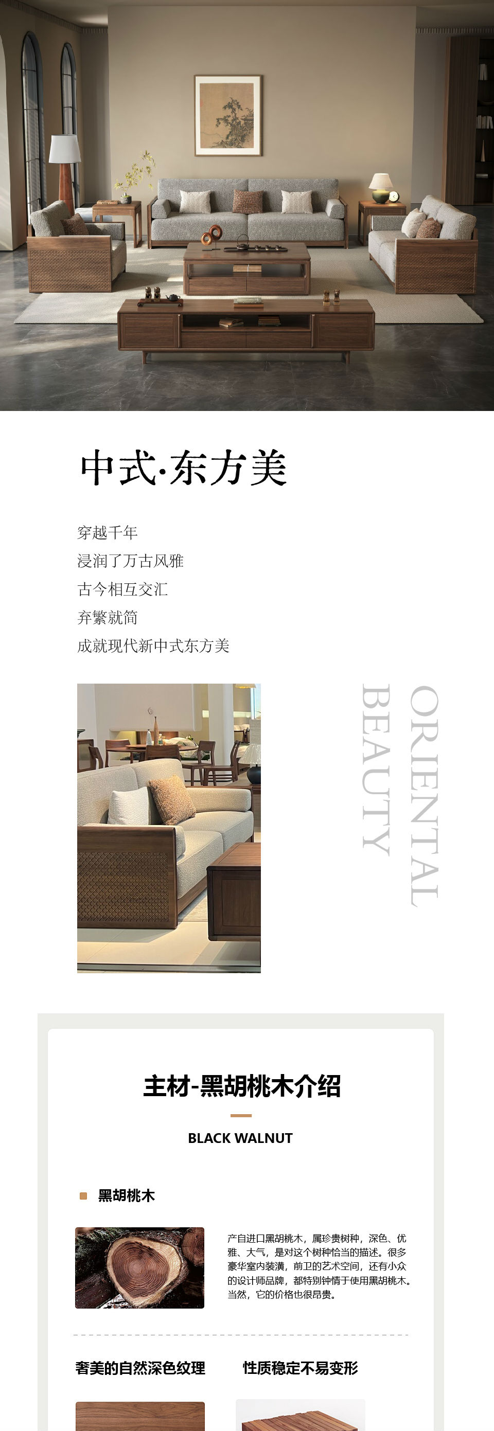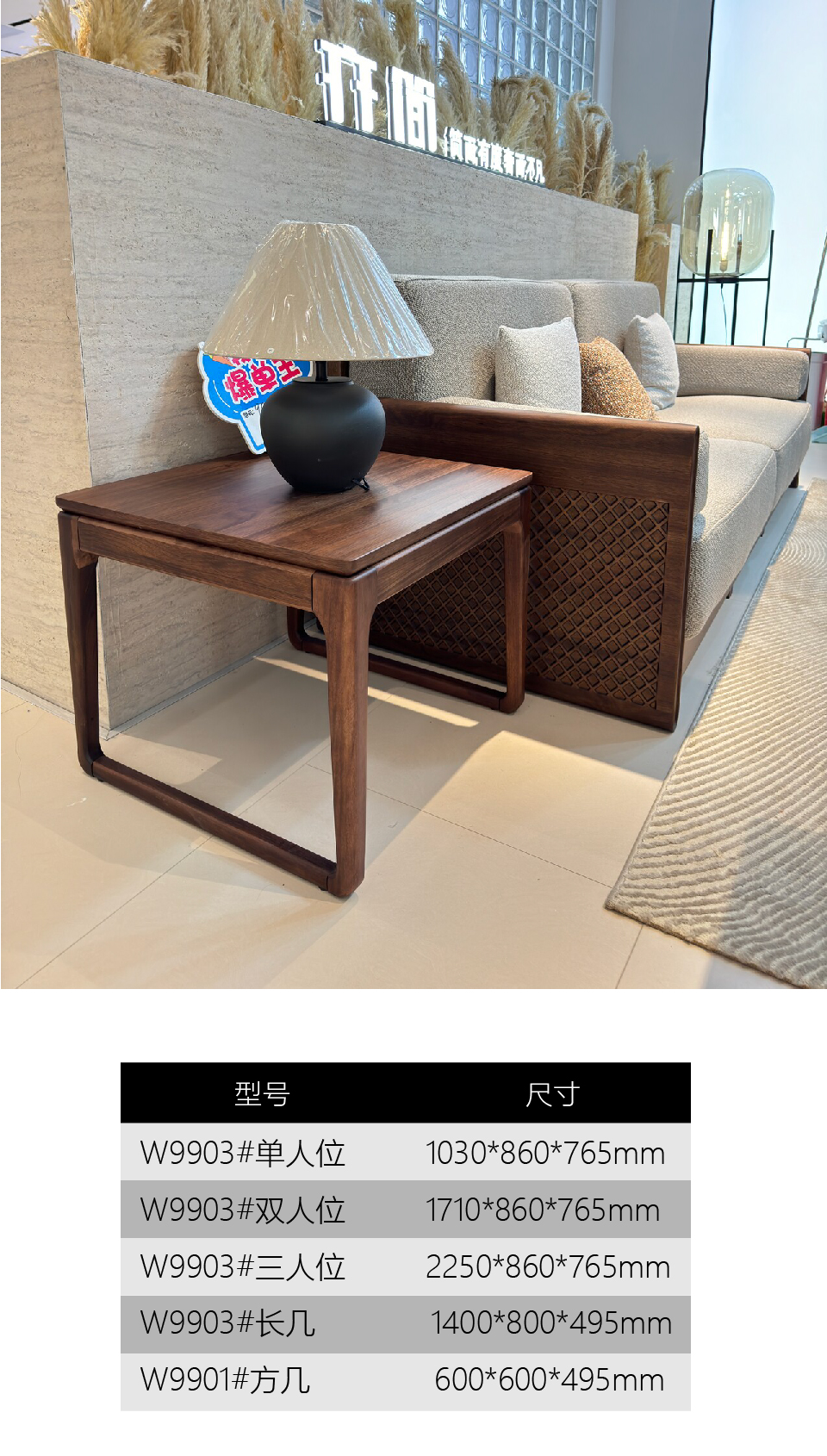 商品名称:W9903#组合沙发W9903长几W9901方几 中式风格 实木家具黑胡桃木 客厅组合沙发茶几方几 客厅家具