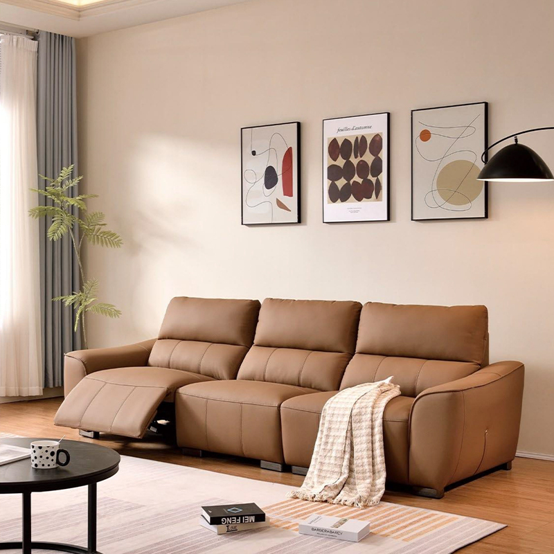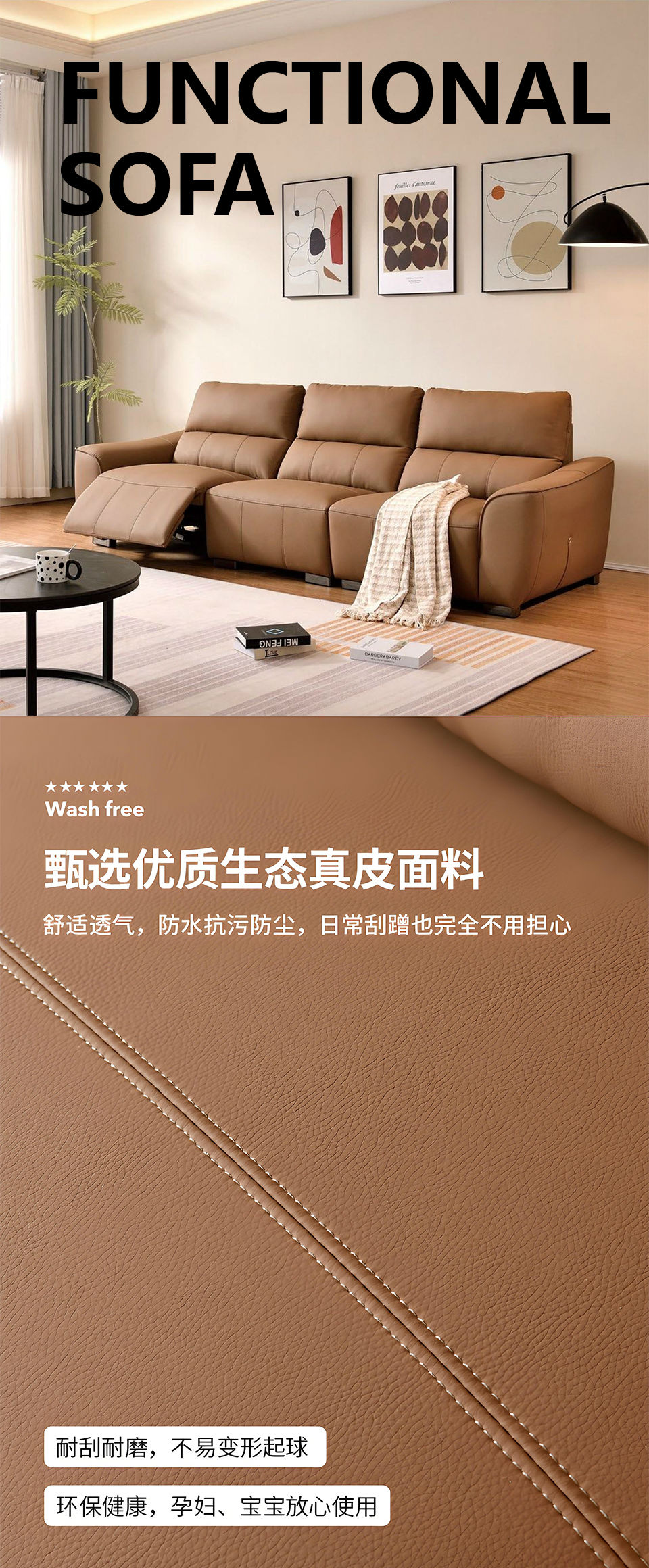 623 现代风格 棕色生态皮头层真皮沙发电动功能 时尚简约落叶松框架 高密度海绵 客厅家具 280*101*101