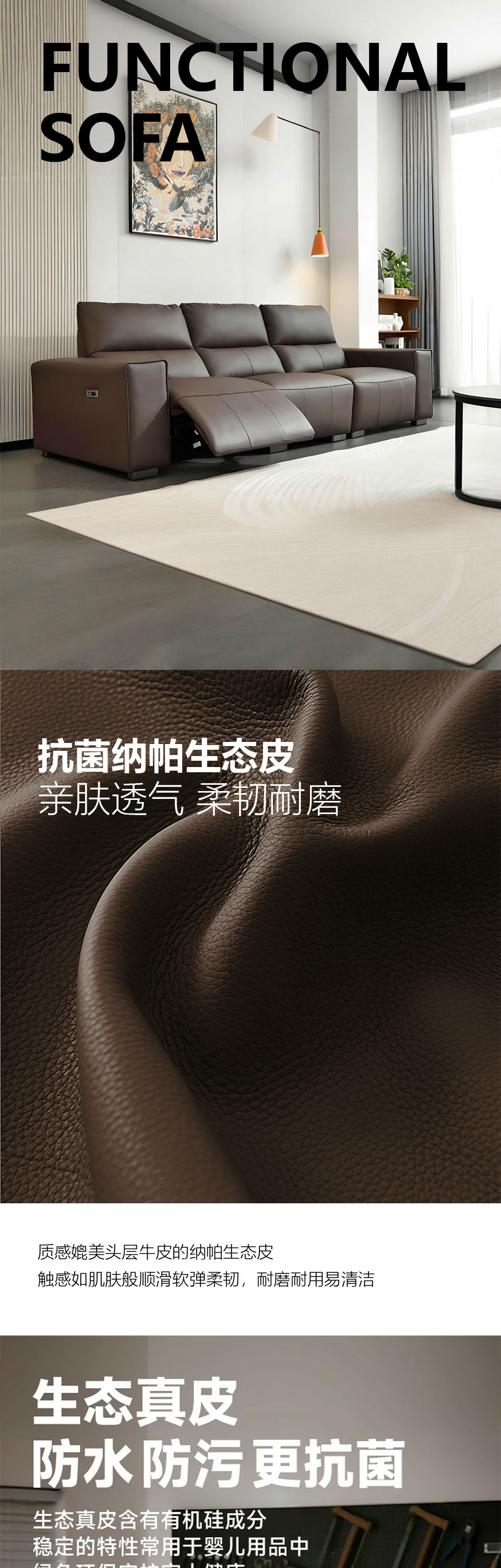 626 现代风格 咖色生态皮头层牛皮沙发电动功能 时尚简约落叶松框架 高密度海绵 客厅家具 280*97*90
