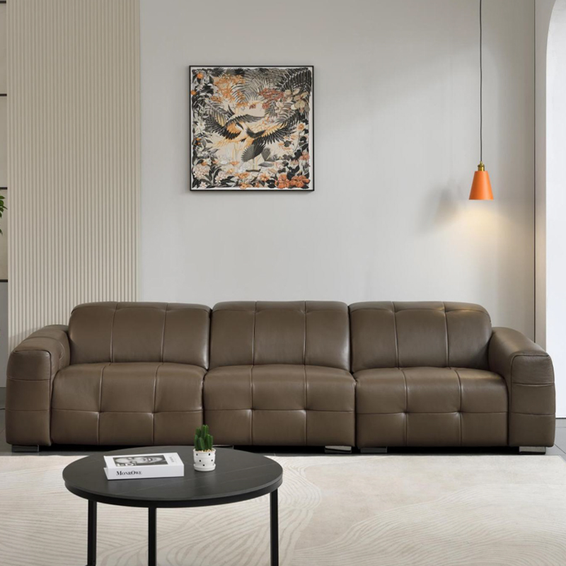 668 现代风格 咖色生态皮沙发电动功能 时尚简约落叶松框架 高密度海绵 客厅家具 300*110*93
