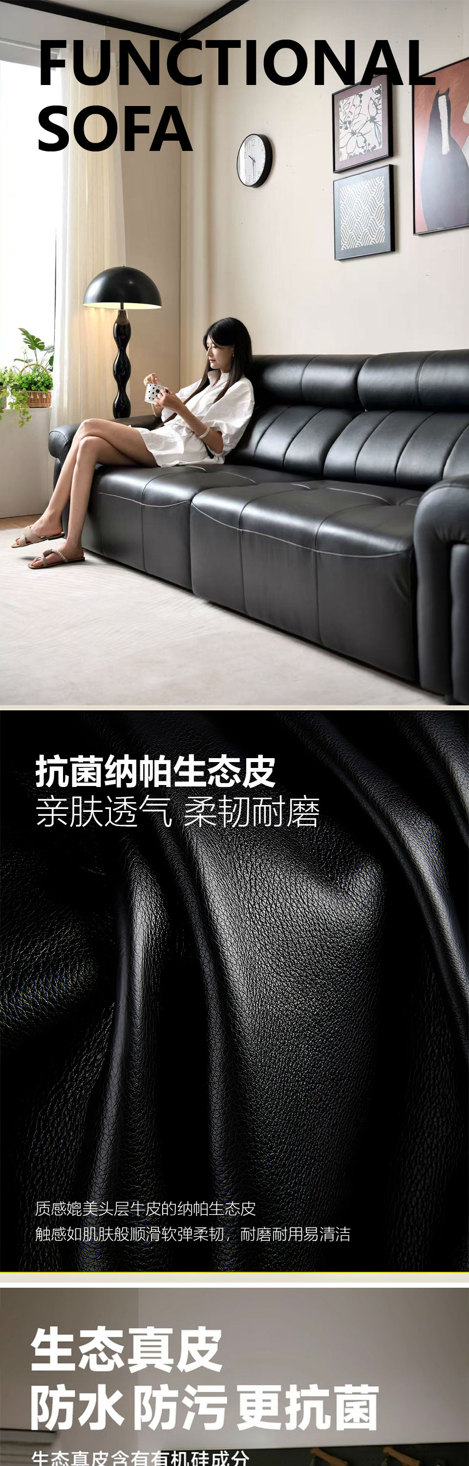 2532 现代风格 黑色生态皮头层真皮沙发电动功能 时尚简约落叶松框架 高密度海绵 客厅家具 280*92*103