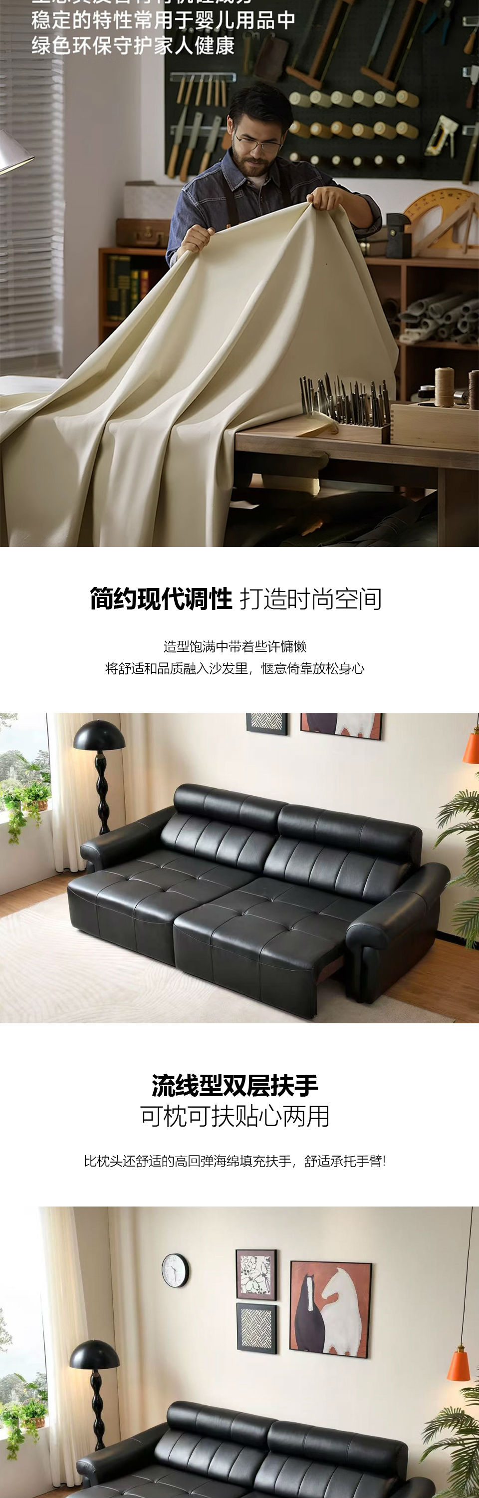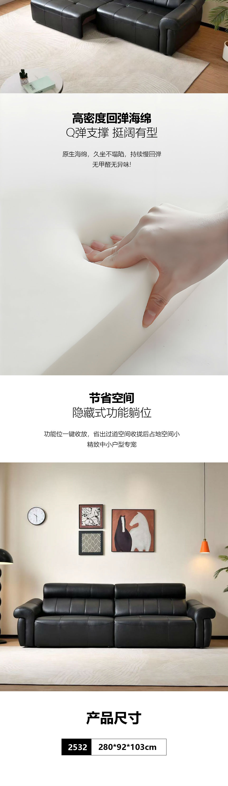 商品名称:2532 现代风格 黑色生态皮头层真皮沙发电动功能 时尚简约落叶松框架 高密度海绵 客厅家具 280*92*103
