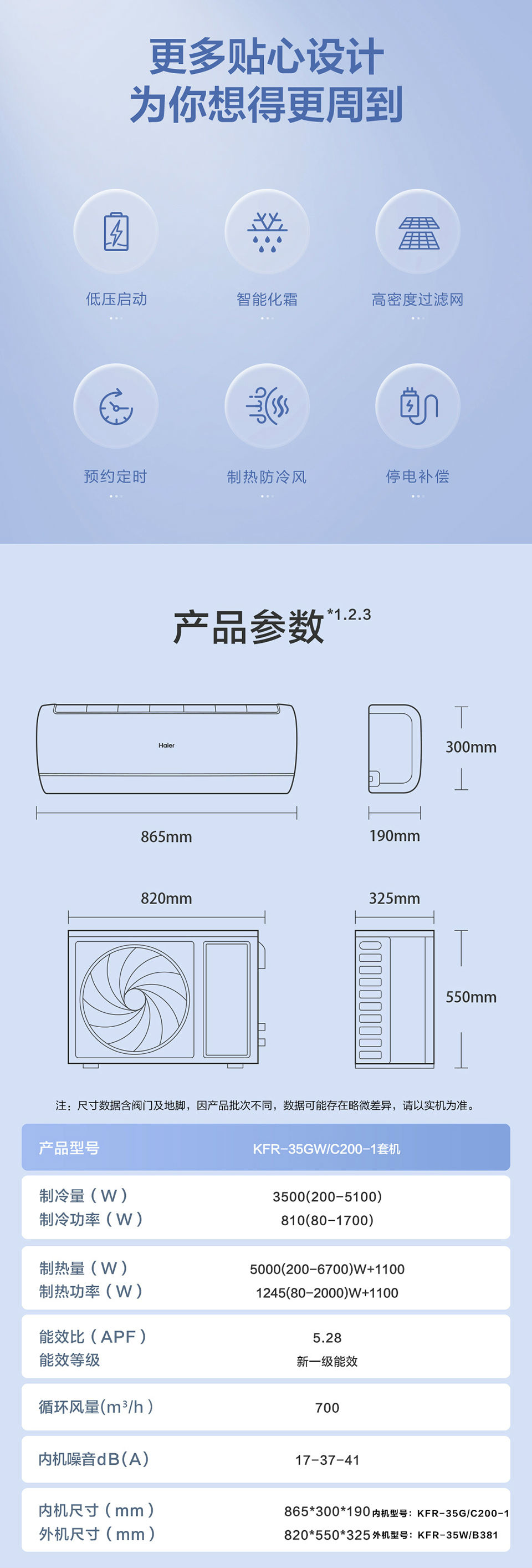 商品名称:Haier海尔 KFR-35GWC200-1 新一级挂机空调 大品牌海尔挂壁空调 卧室书房餐厅客厅通用