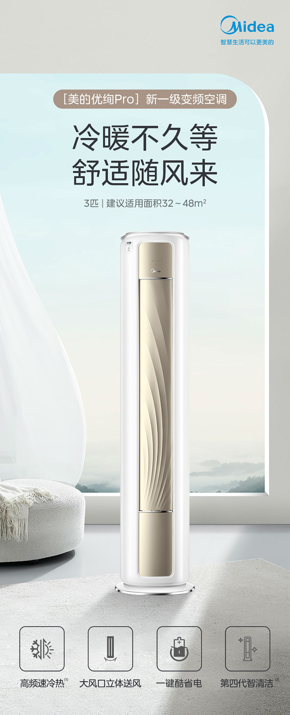 商品名称:Midea美的立式空调 一级智能制冷三匹柜机 家用变频空调 客厅餐厅卧室通用