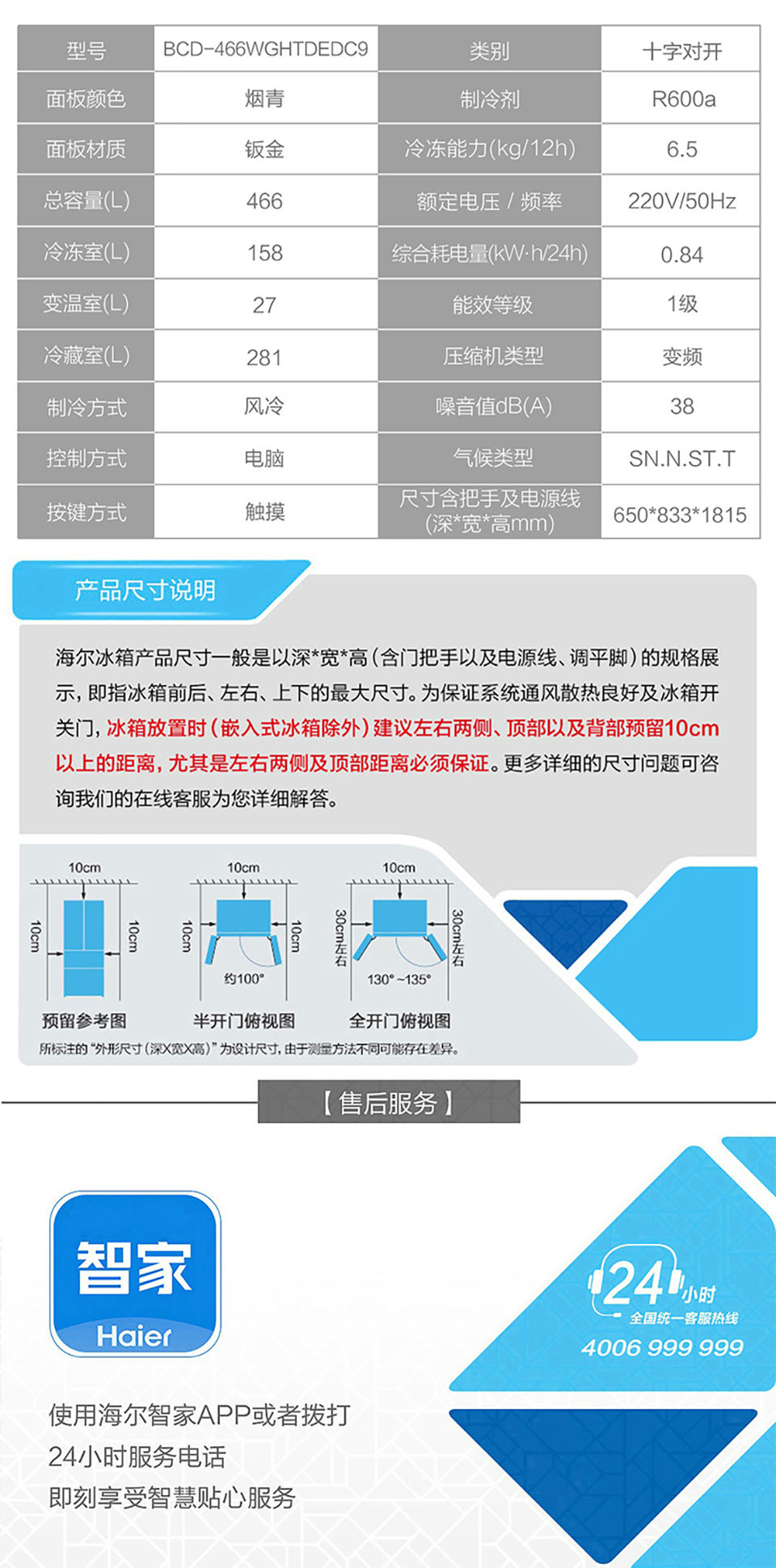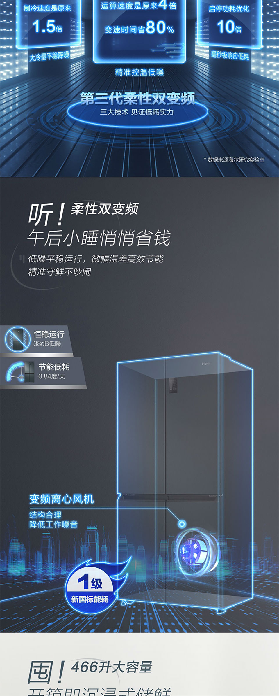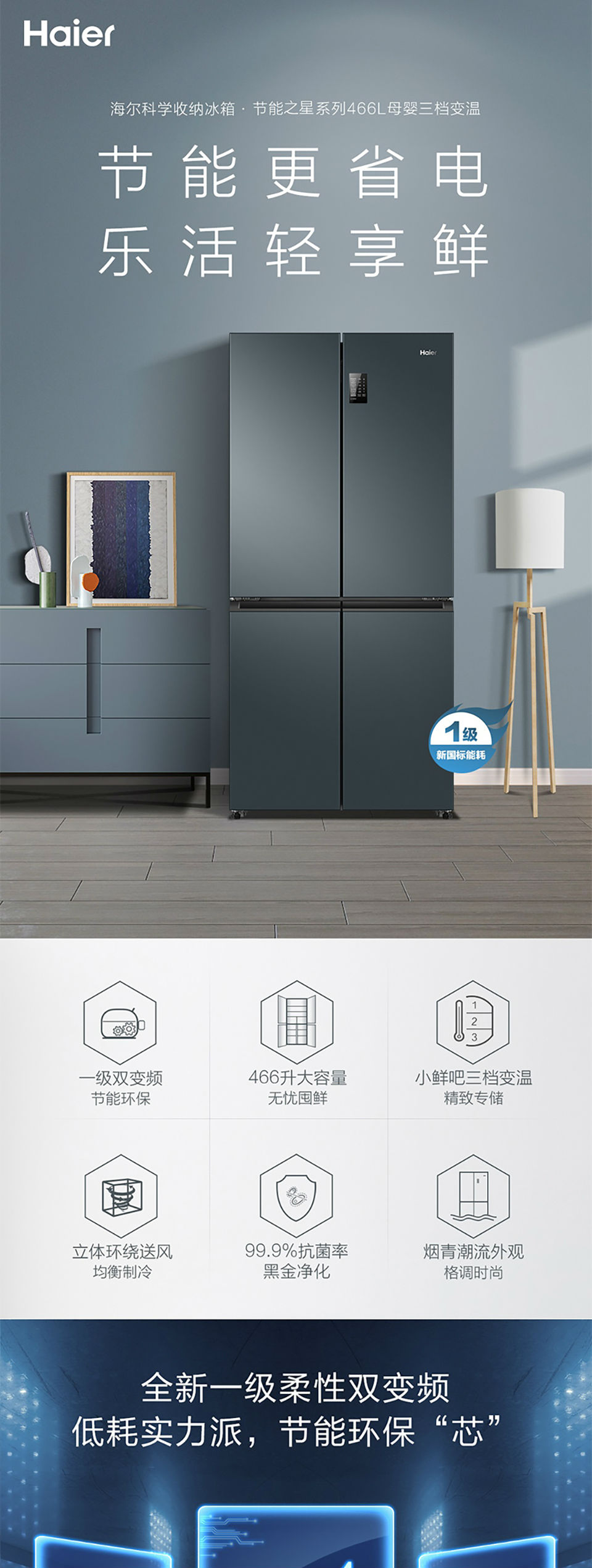 商品名称:海尔冰箱 一级能效变频风冷 家用冰箱