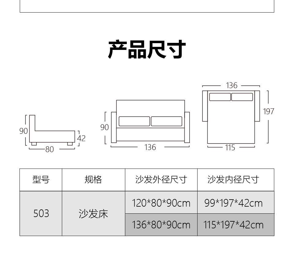 商品名称:503 现代风格 简约耐用客厅沙发床 客厅家具 1.2米/1.36米
