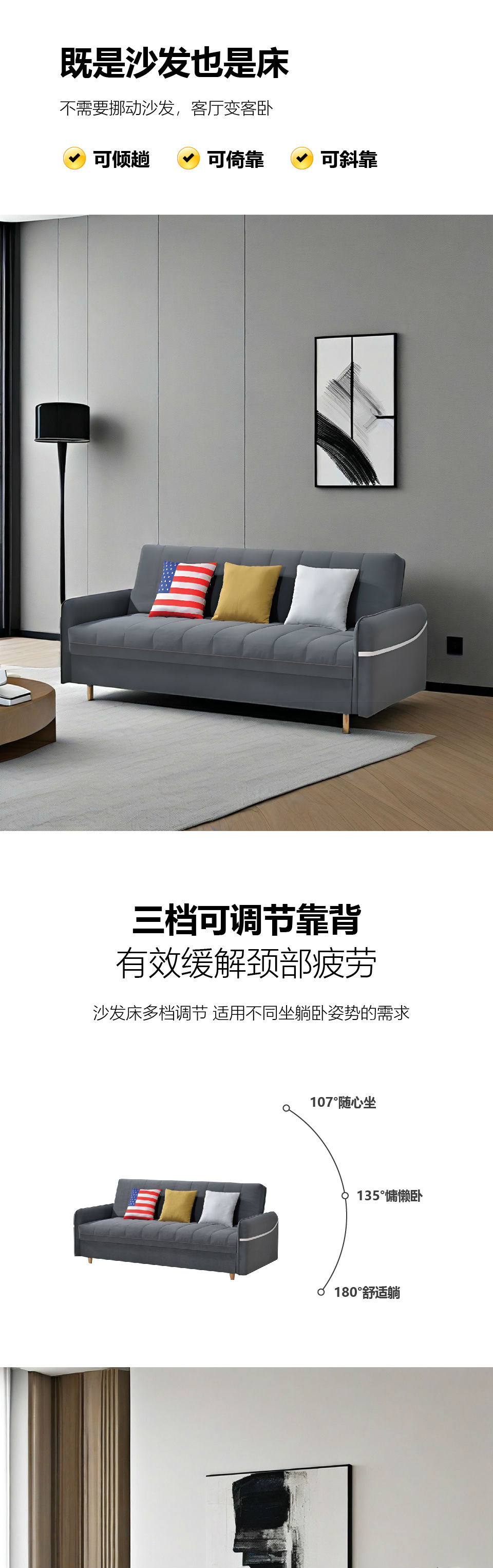 531 现代风格 简约耐用客厅沙发床 客厅家具 2.15米