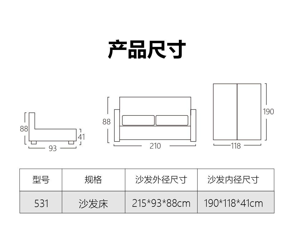 商品名称:531 现代风格 简约耐用客厅沙发床 客厅家具 2.15米