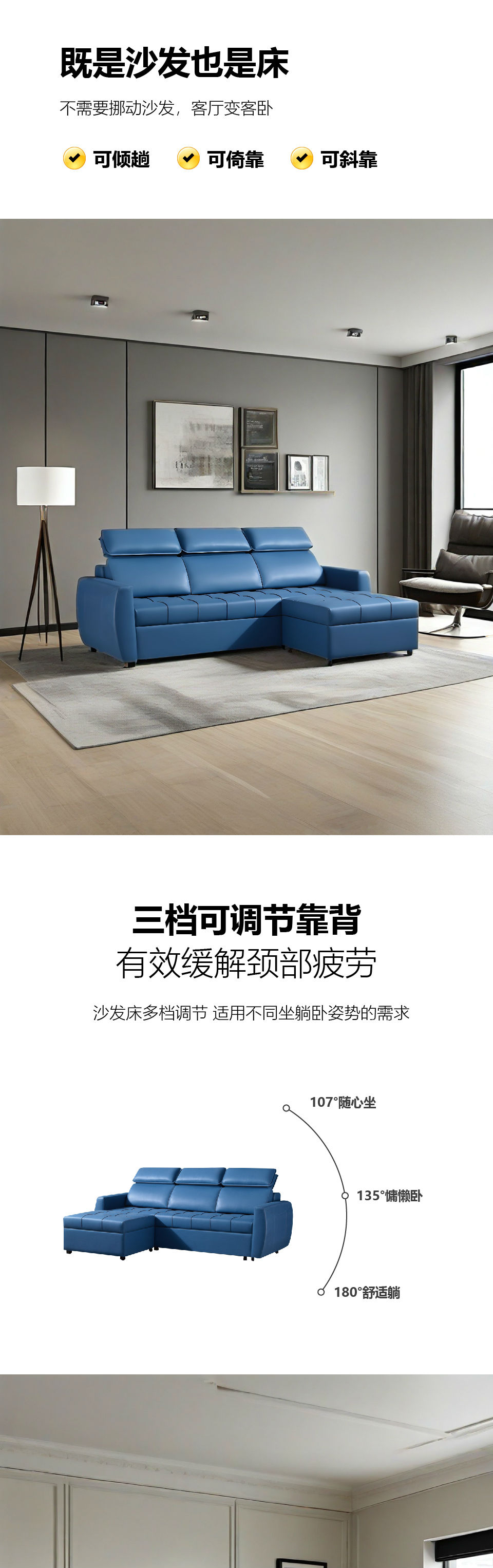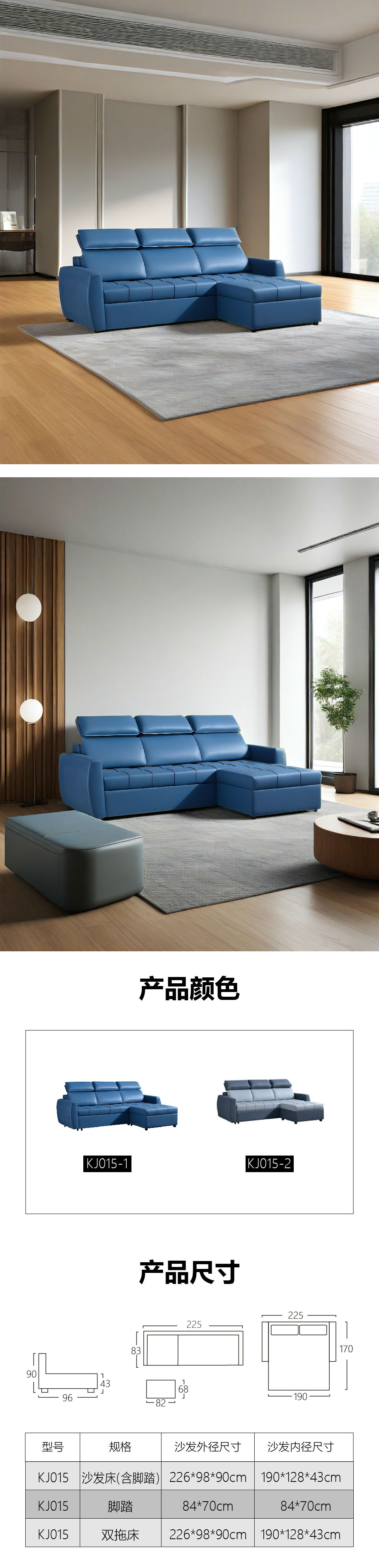 KJ015 现代风格 简约耐用客厅沙发床 客厅家具 2.26米
