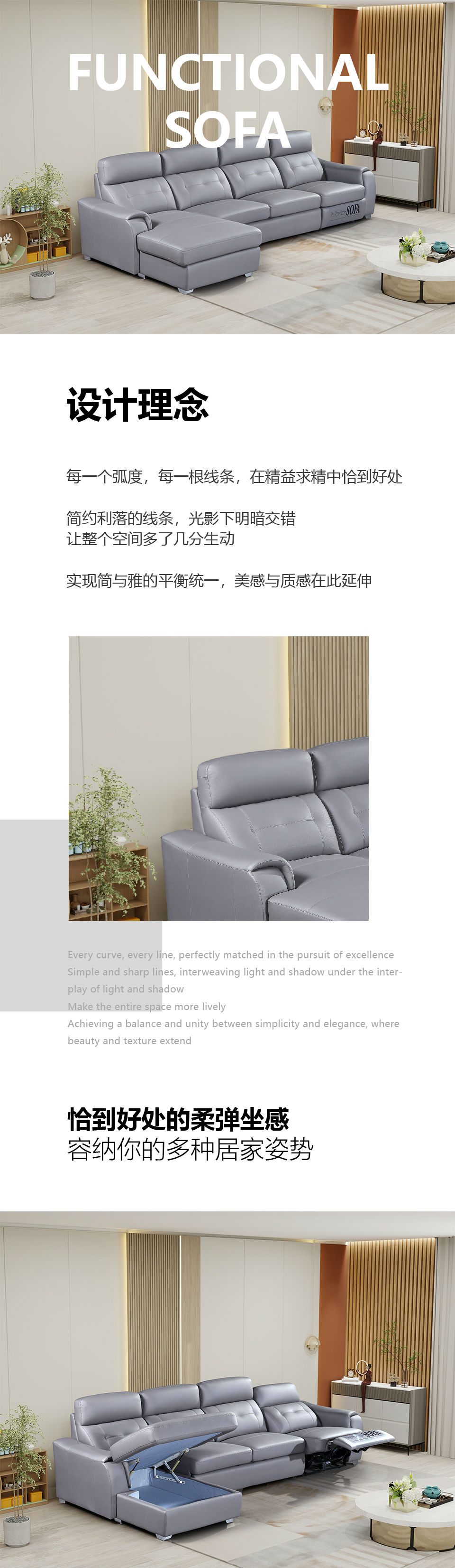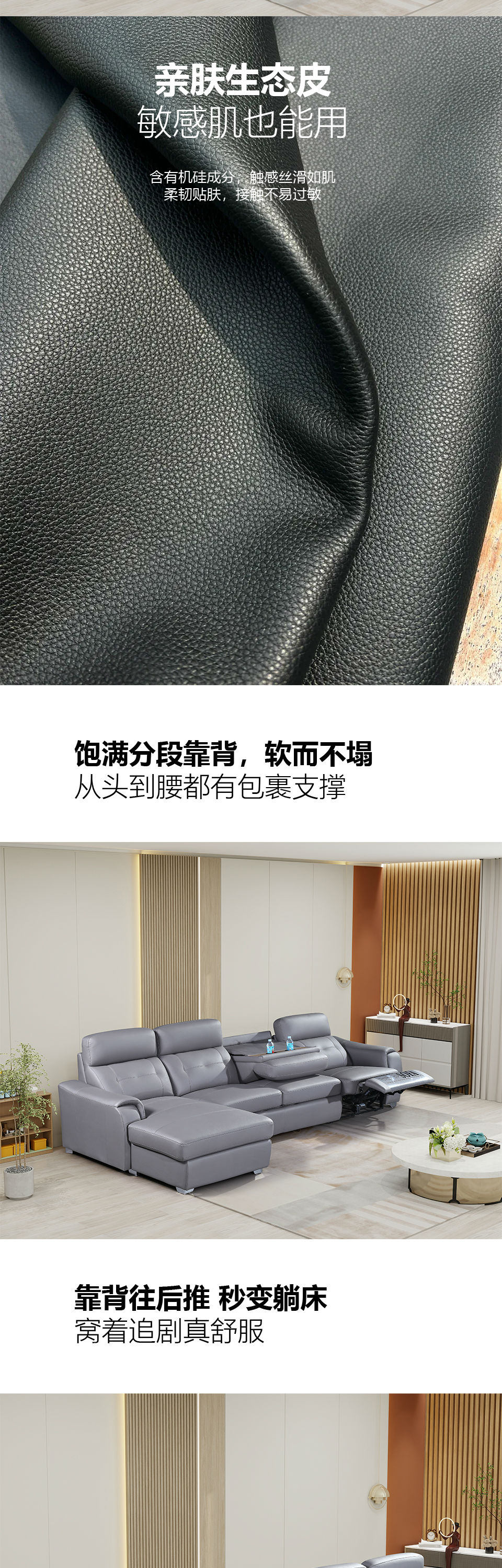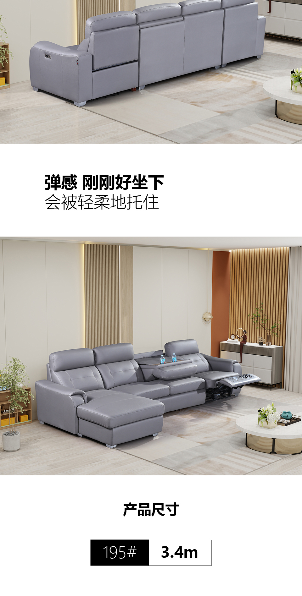 195# 现代风格 生态皮沙发 客厅功能沙发 客厅家具3.4米