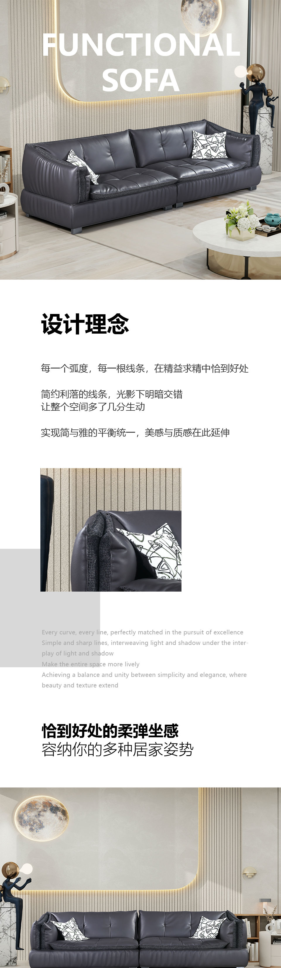 商品名称:261# 现代风格 生态皮沙发 客厅功能沙发 客厅家具3.2米