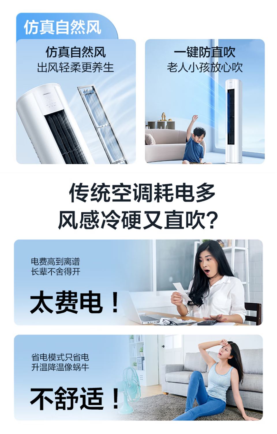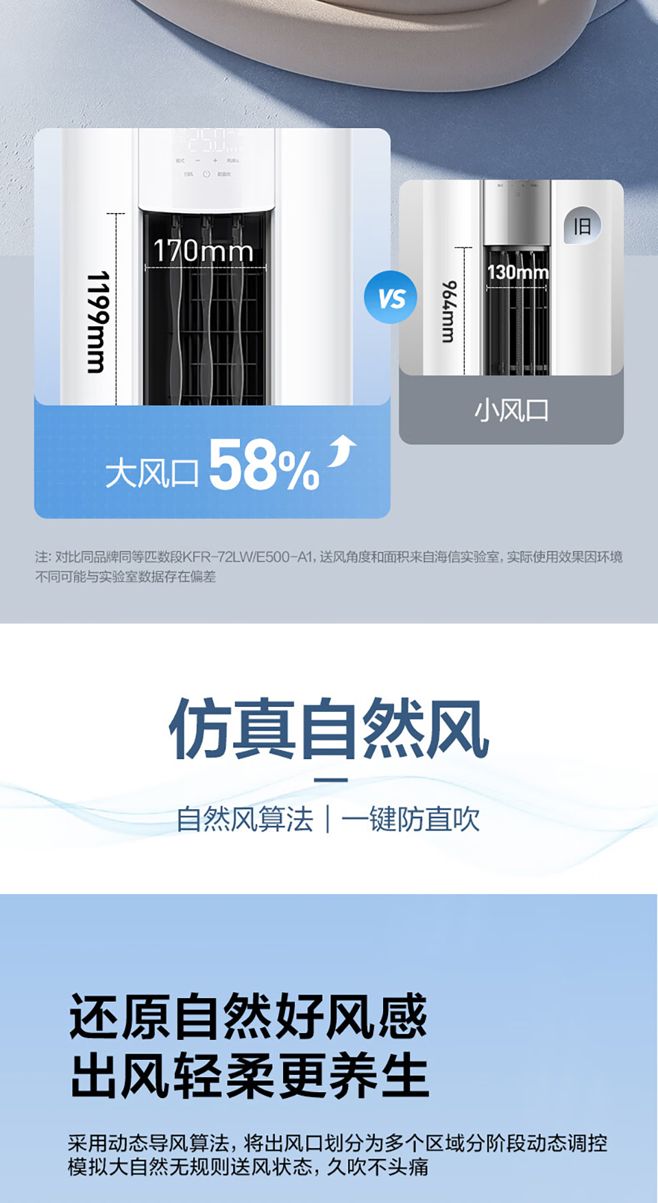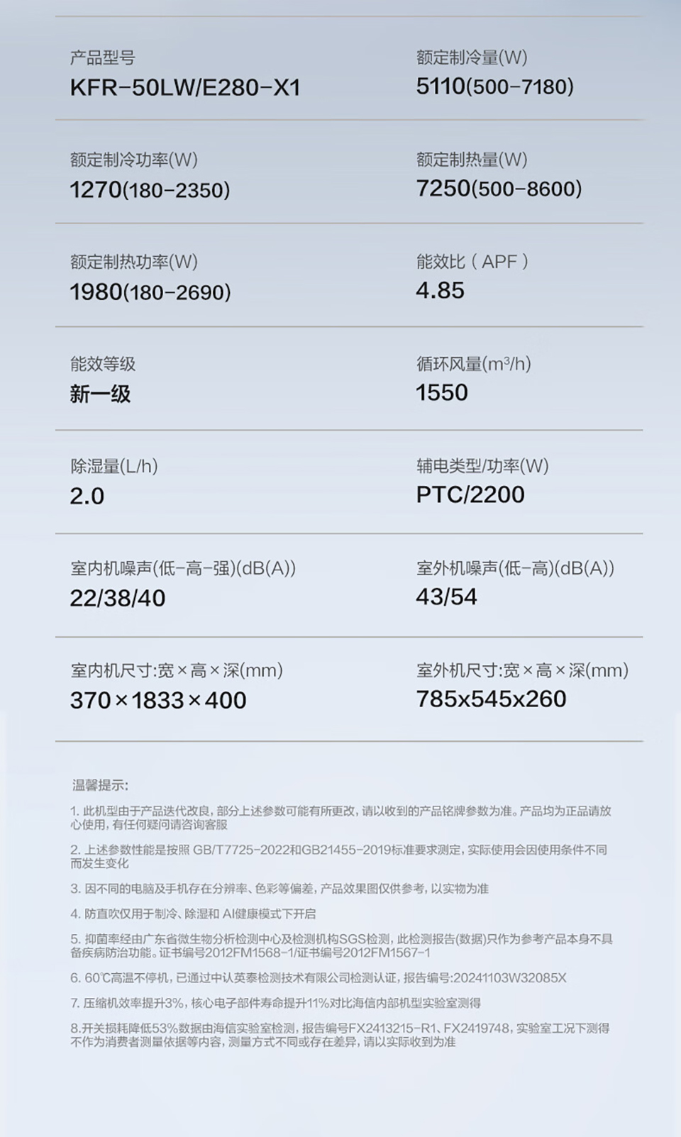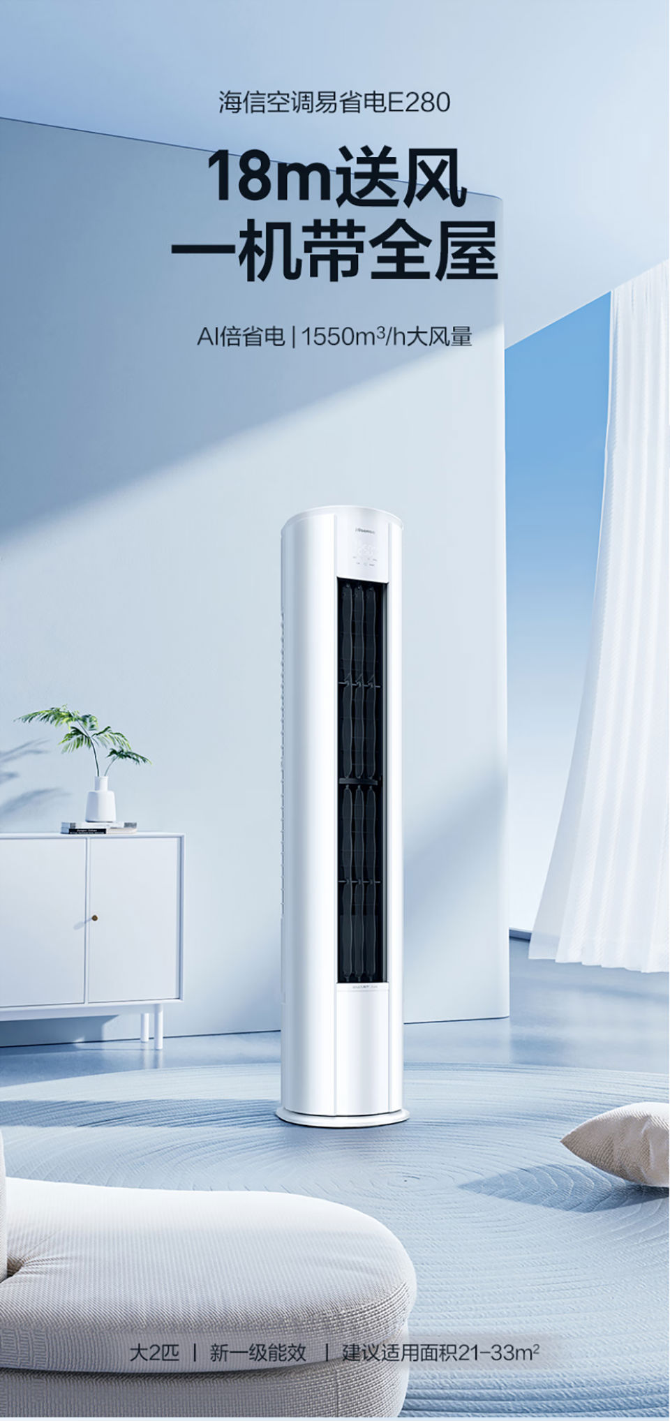 商品名称:海信(Hisense)空调 大2匹 易省电E280 AI省电 速冷热仿真自然风新一级立式空调柜机KFR-50LW/E280-X1