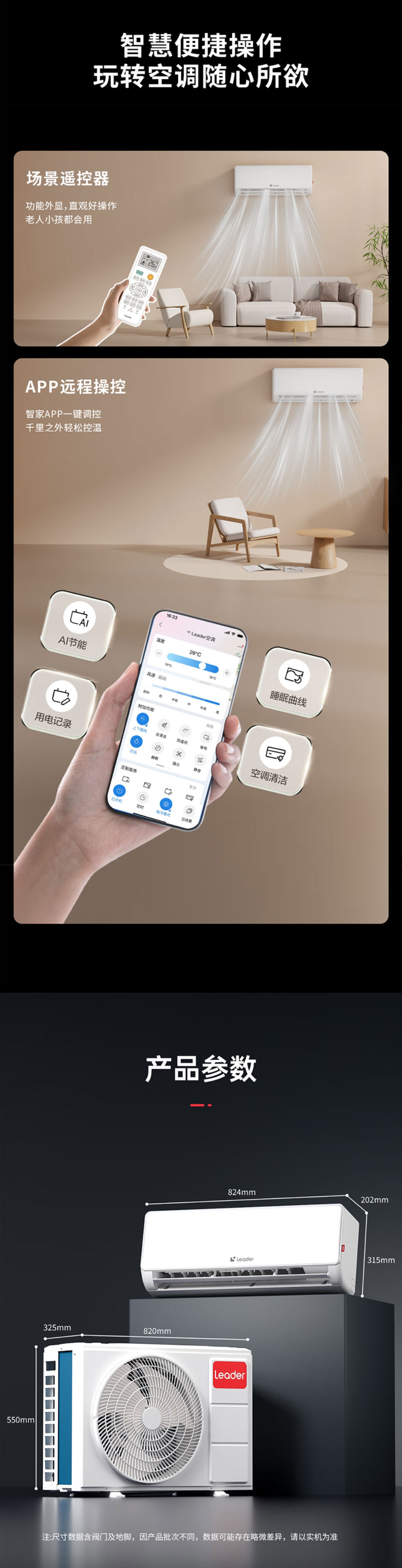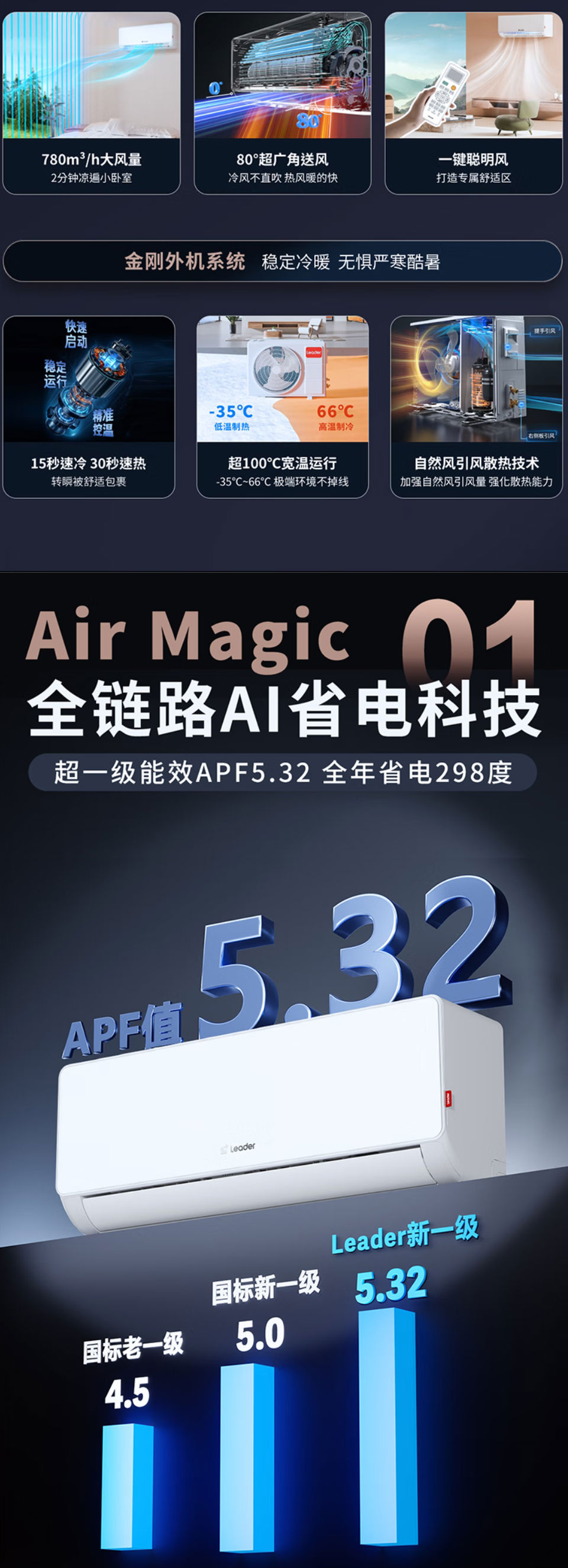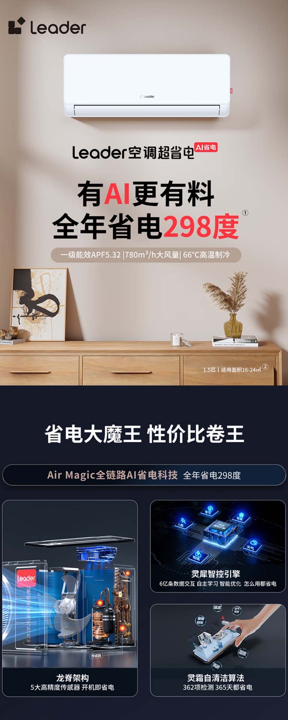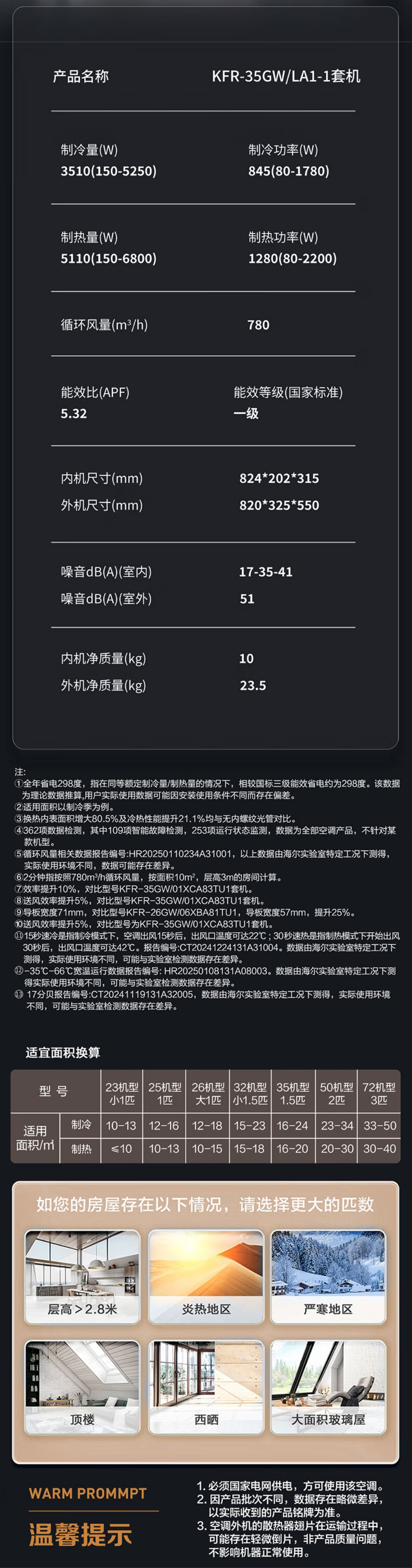 商品名称:海尔智家出品 1.5匹超一级能效 AI超省电变频空调挂机 冷暖壁挂式KFR-35GW/LA1-1