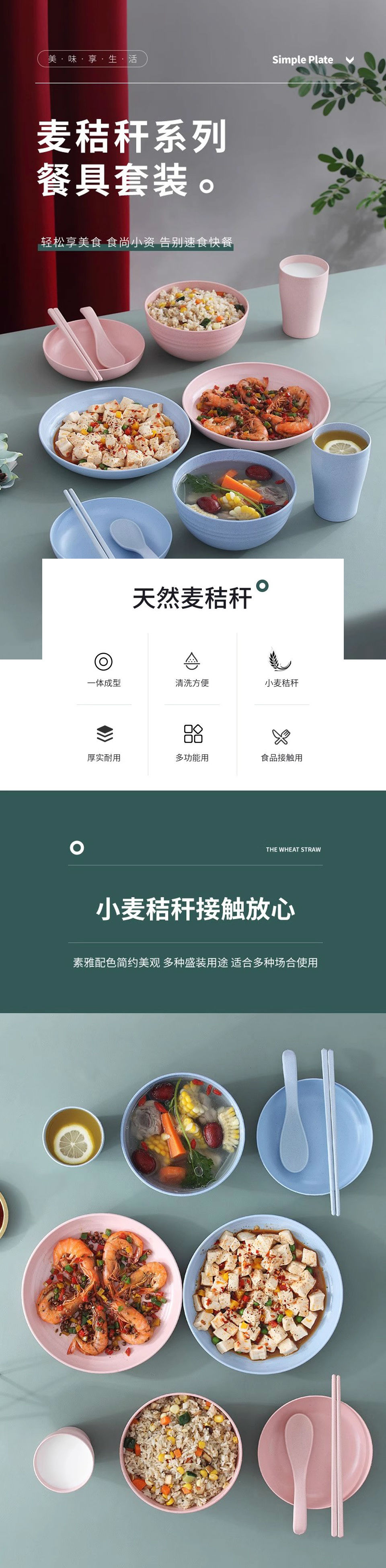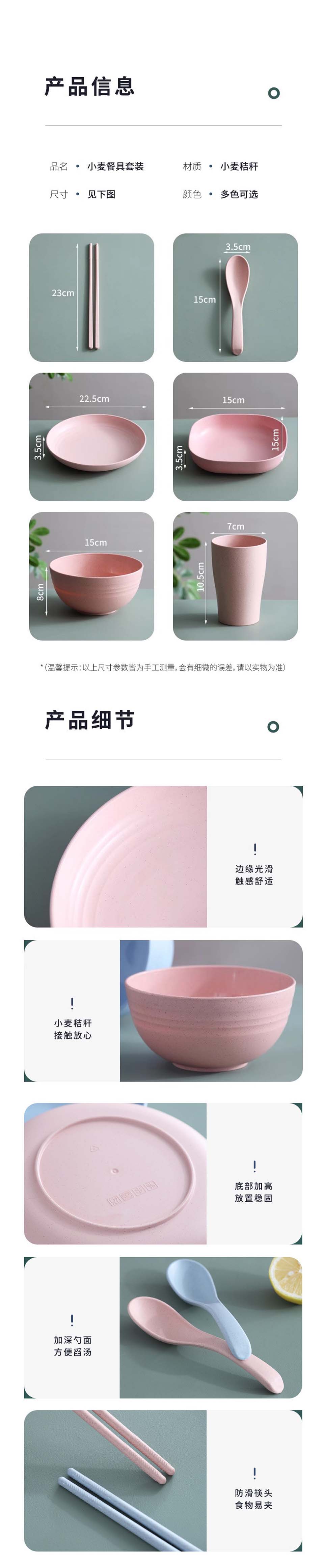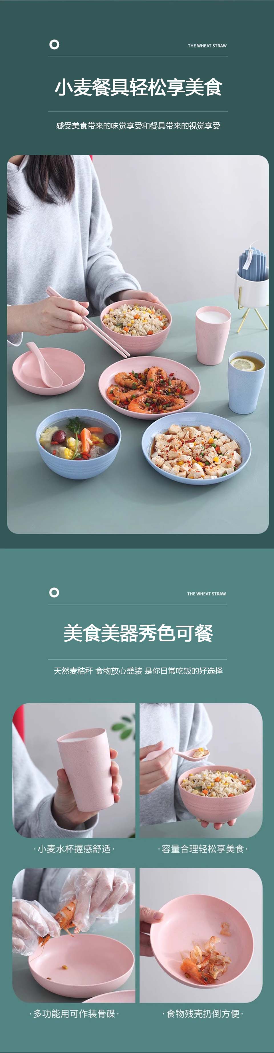 商品名称:37 小麦秸秆碗 家用塑料防摔单人碗盘碟筷勺餐具套装