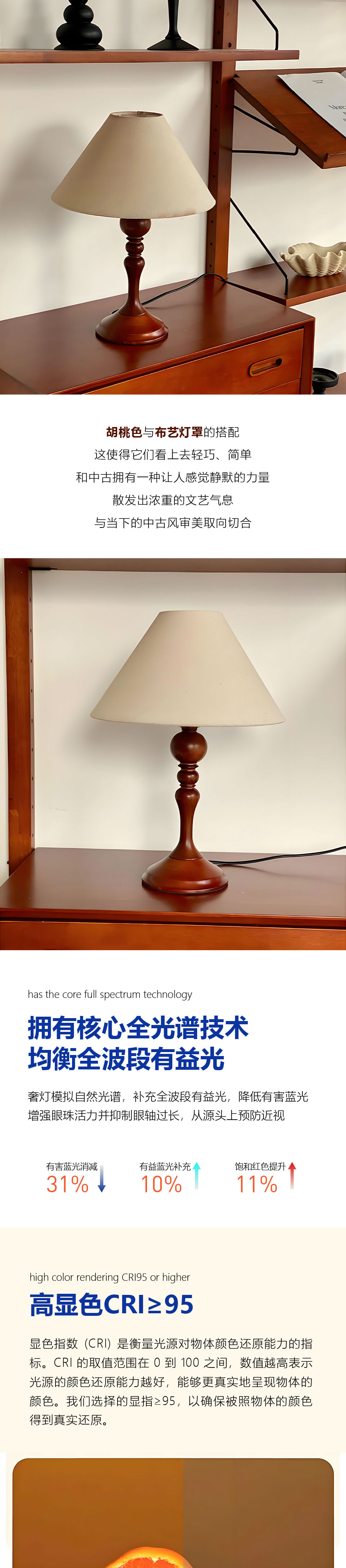 商品名称:42台灯中古风台灯 木色法式台灯 卧室氛围台灯 客厅台灯 床头柜台灯