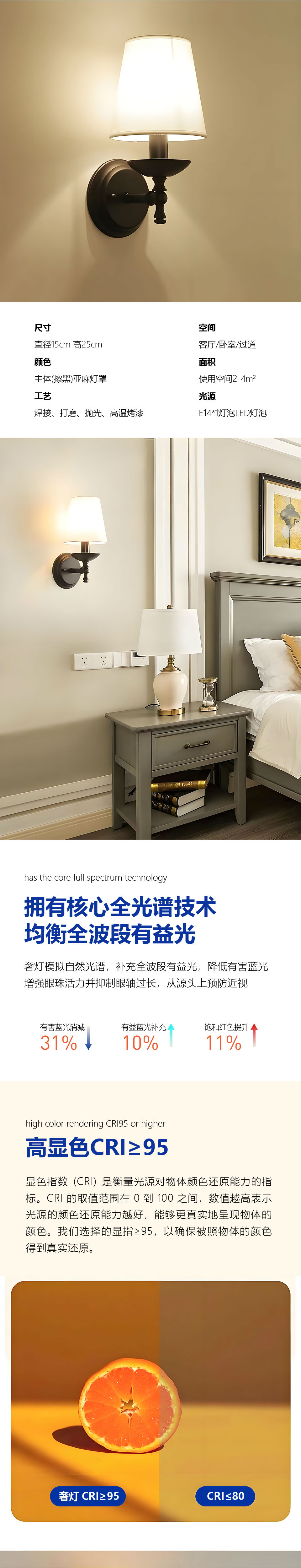 商品名称:50灯美式复古床头壁灯卧室镜前灯客厅过道单头壁灯乡村铁艺灯具灯饰