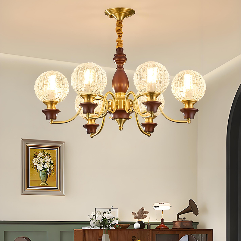 76灯 中古风 全铜实木客厅吊灯 轻奢高级感酒店主厅灯 轻奢大气卧室灯