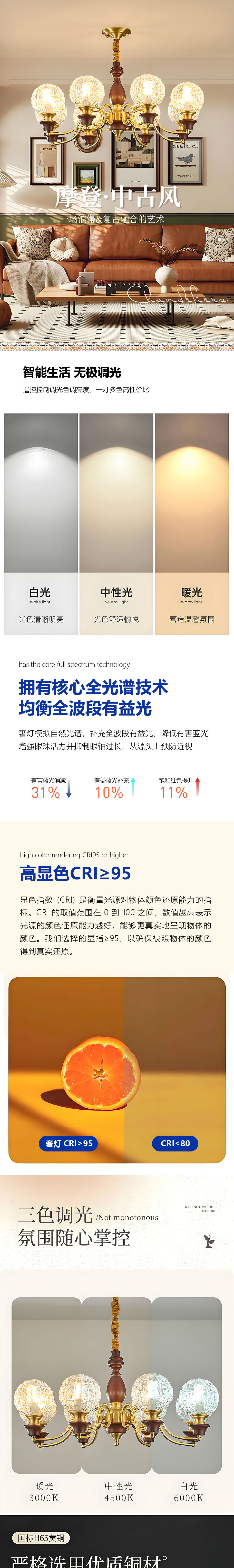 商品名称:76灯 中古风 全铜实木客厅吊灯 轻奢高级感酒店主厅灯 轻奢大气卧室灯