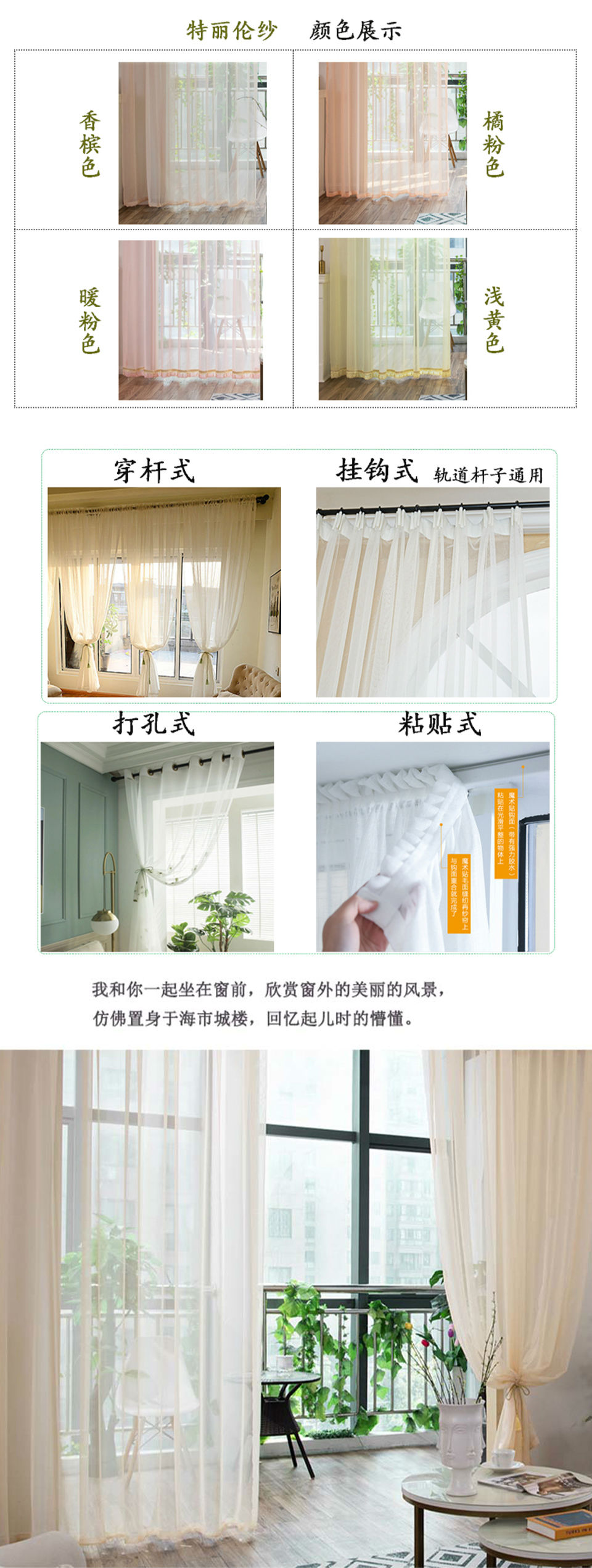 3玻璃门窗纱帘透光透人纱北欧公主风公寓租房落地窗飘窗薄纱装饰纱