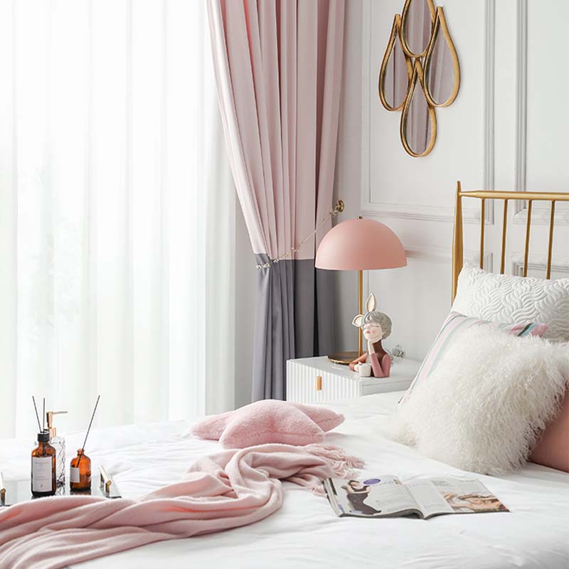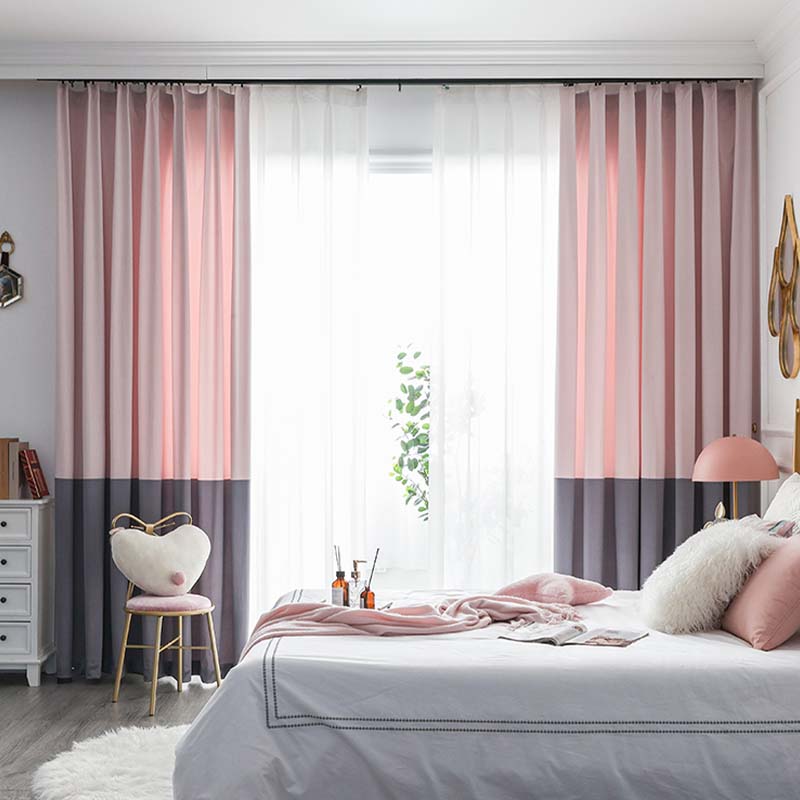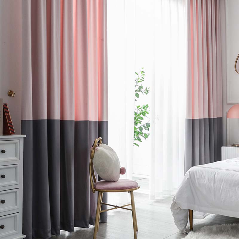 4法式窗帘粉灰色奶茶纯色拼色渐变仿羊绒雪尼尔绒布少女轻奢风ins