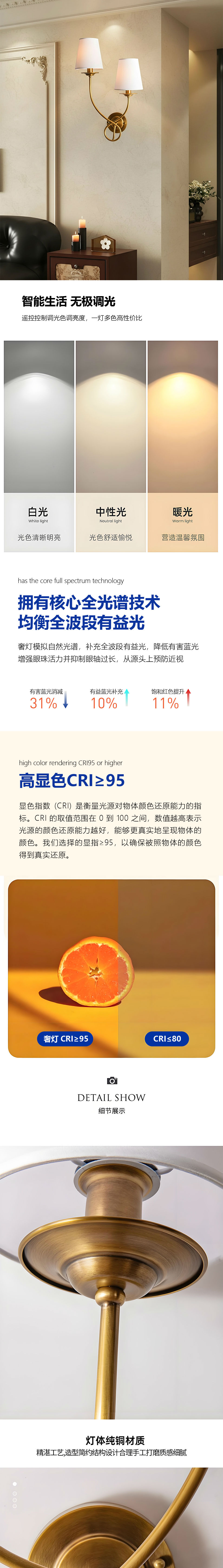 壁灯 全铜复古 三色变光