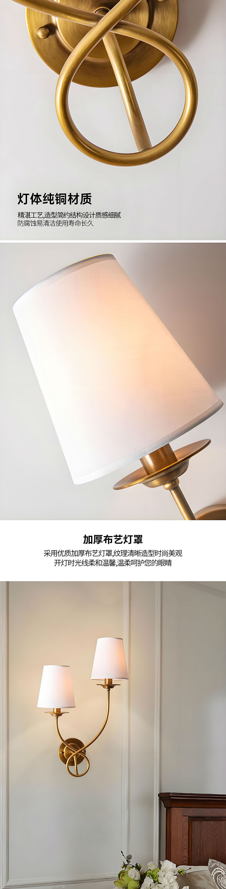84灯 美式风格壁灯 全铜灯 复古风壁挂灯 客厅餐厅卧室床头柜灯