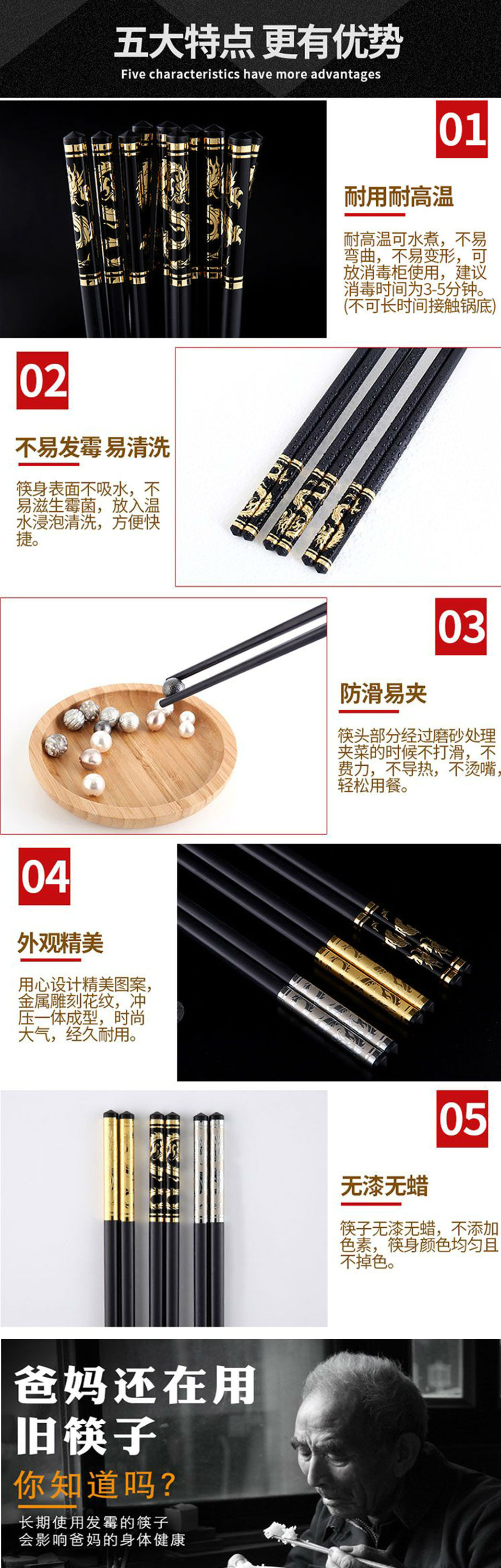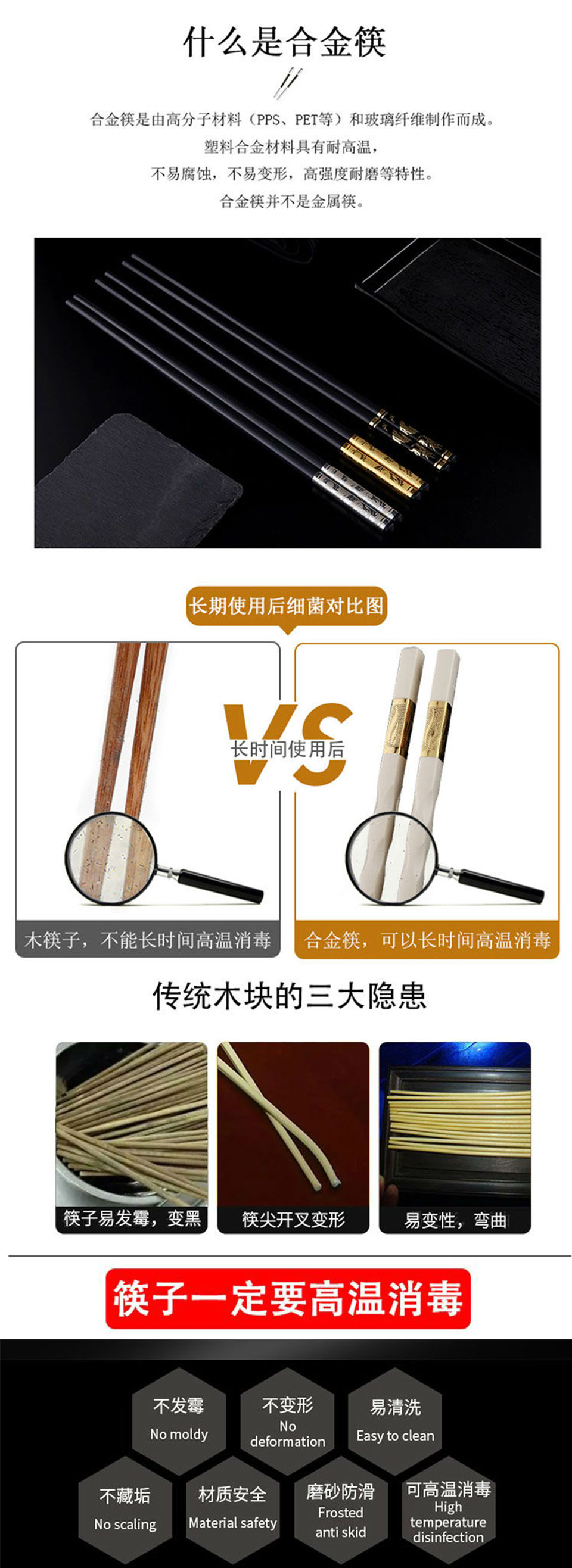 商品名称:173家用高档耐高温不发霉防滑无漆无蜡合金筷子
