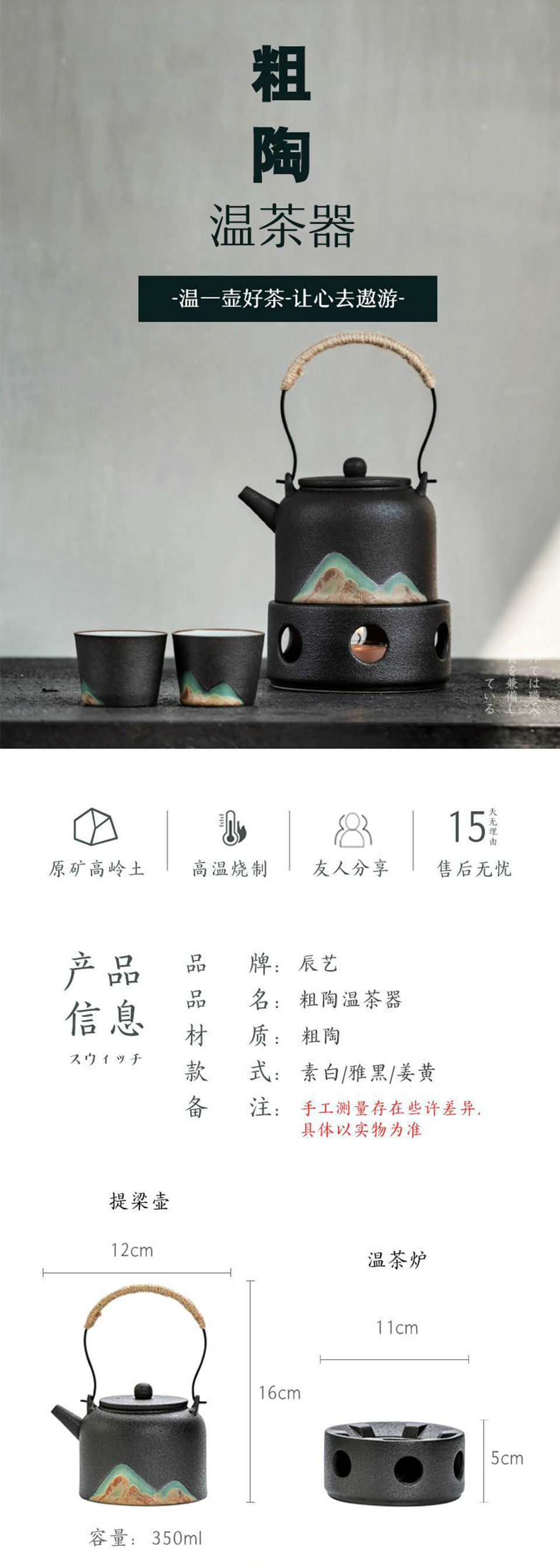 商品名称:182陶瓷日式功夫茶具茶壶家用耐高温过滤单壶温茶炉温茶器煮茶器泡茶