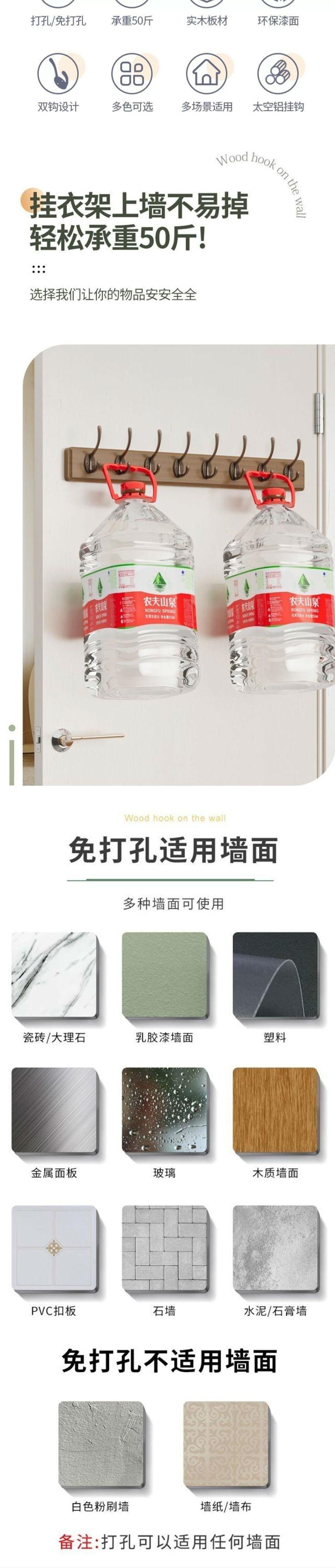 商品名称:179挂衣钩墙上免打孔打孔安装衣服挂钩墙上家用多场景适用