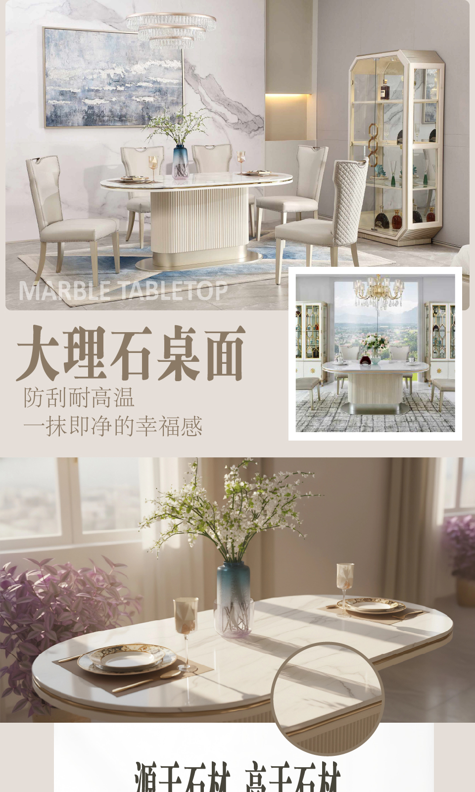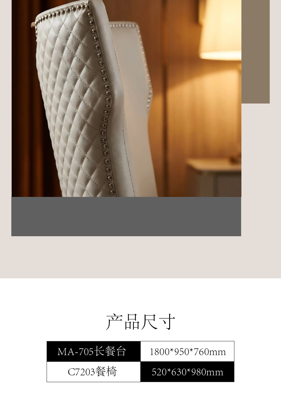 商品名称:欧式风格 餐厅家具 MA-705长餐台 C7203餐椅 优质桦木 大理石台面 奢华餐桌