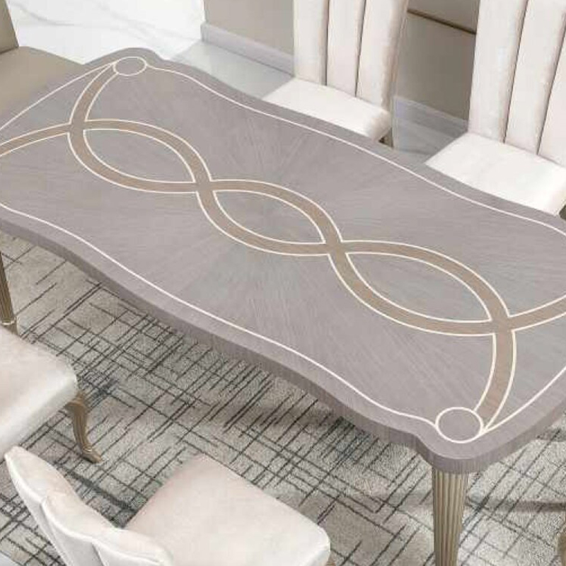 欧式风格 2.1米长餐台 银梨木皮拼花餐桌 MA-710长餐台+MA-811餐椅