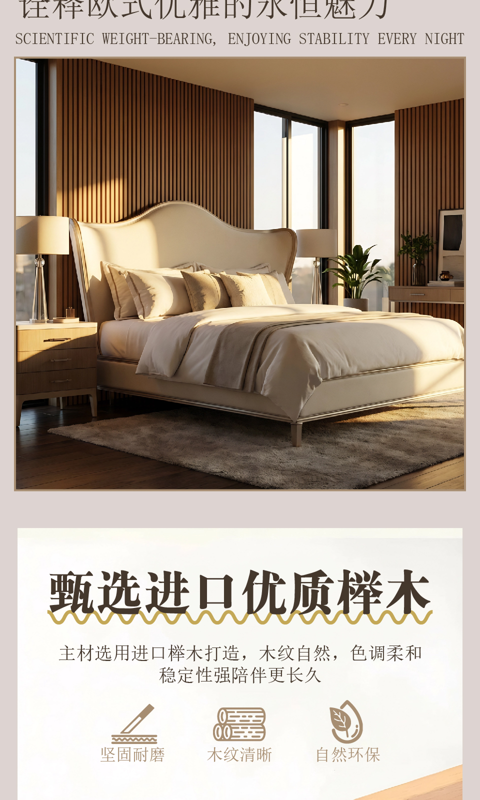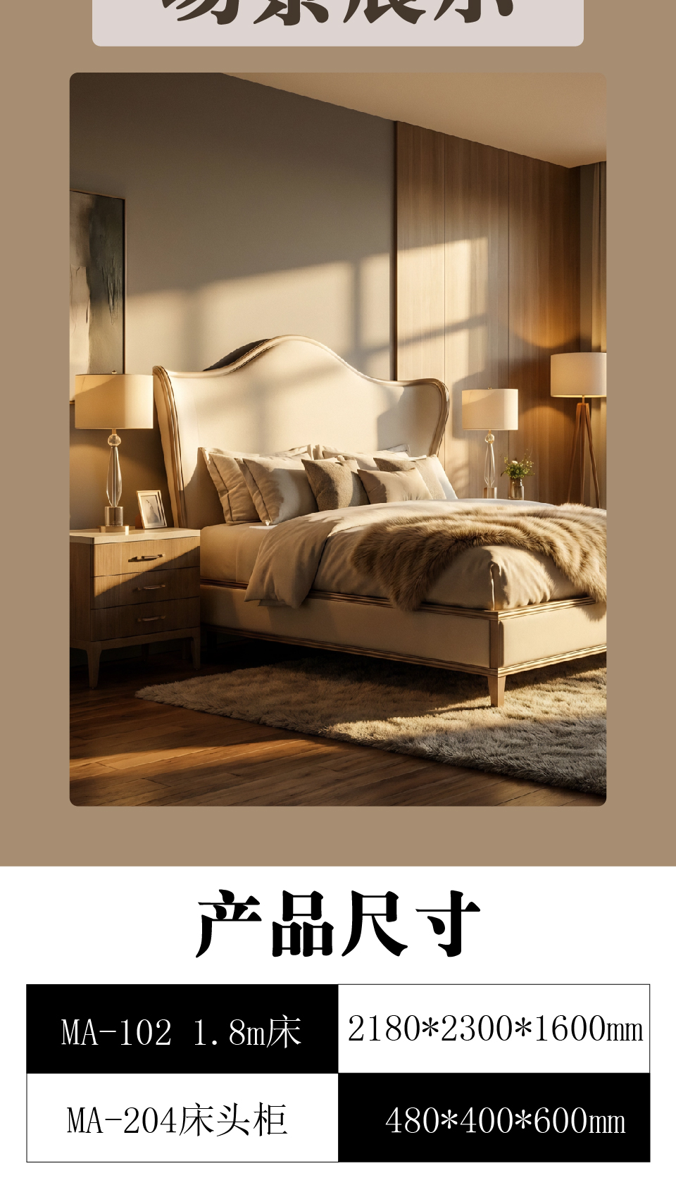 商品名称:欧式风格 轻奢实木大床 1.8米大床 MA-102 1.8m床+MA-204床头柜 优质榉木卧房家具