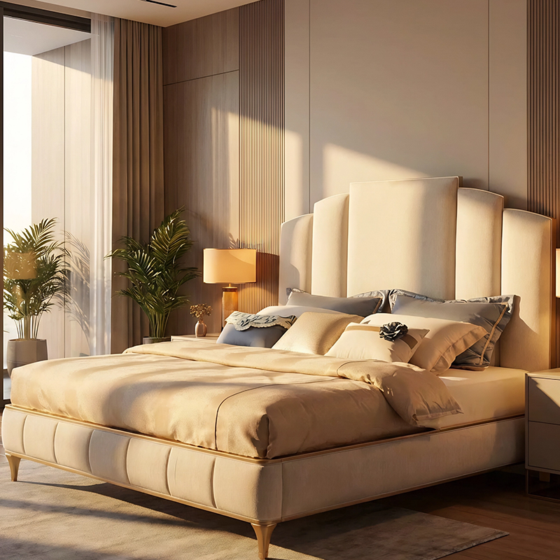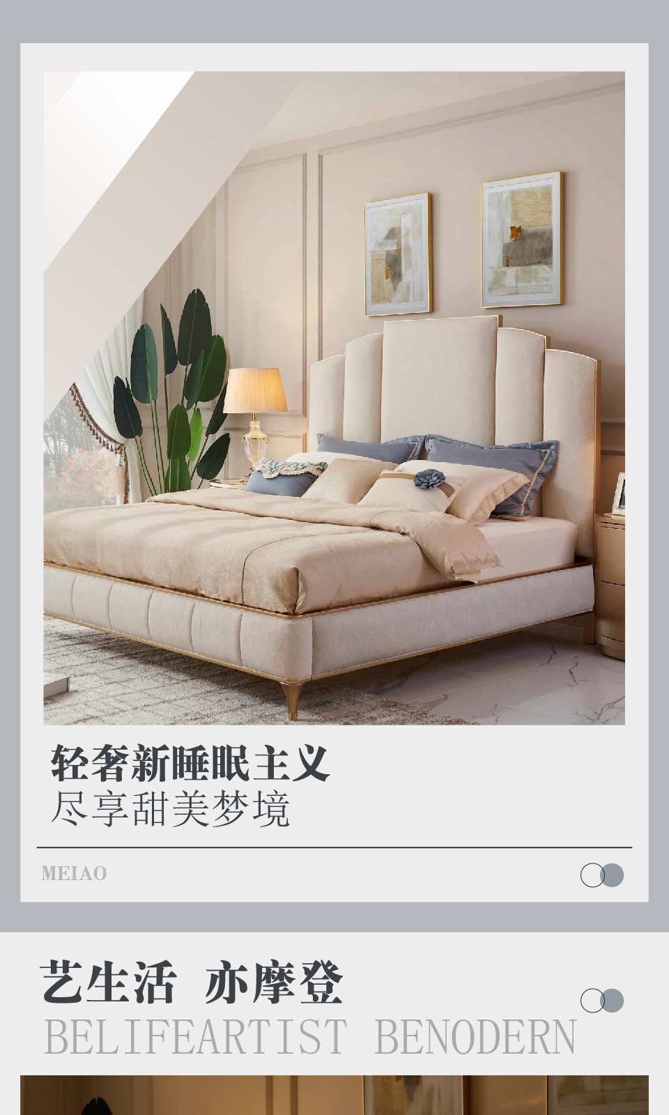 欧式风格 轻奢香槟色卧房家具 MA-111A 1.8m床+MA-111B 1.5m床 优质榉木寝室家具