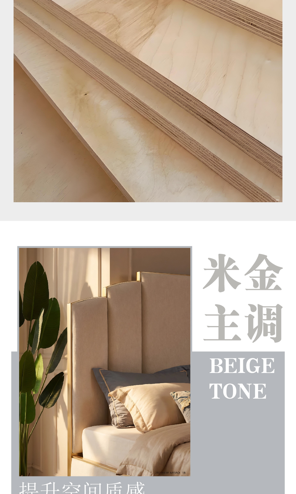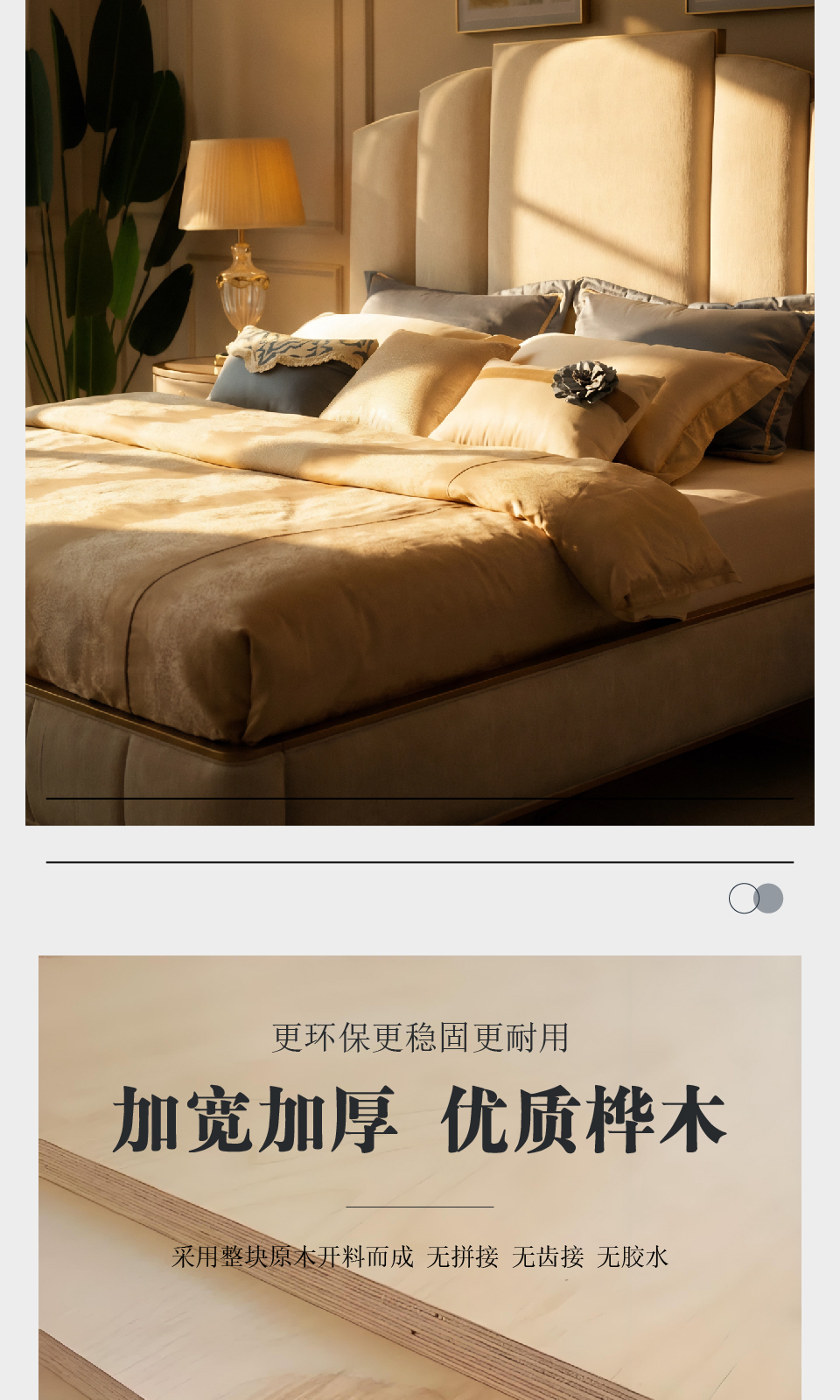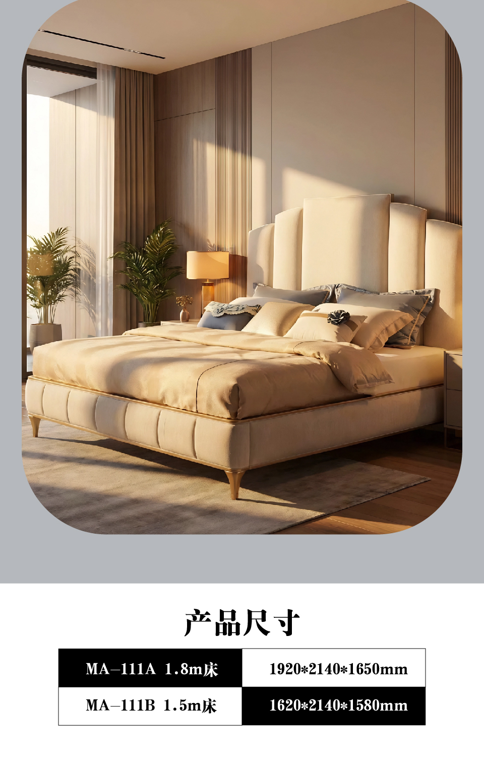 商品名称:欧式风格 轻奢香槟色卧房家具 MA-111A 1.8m床+MA-111B 1.5m床 优质榉木寝室家具